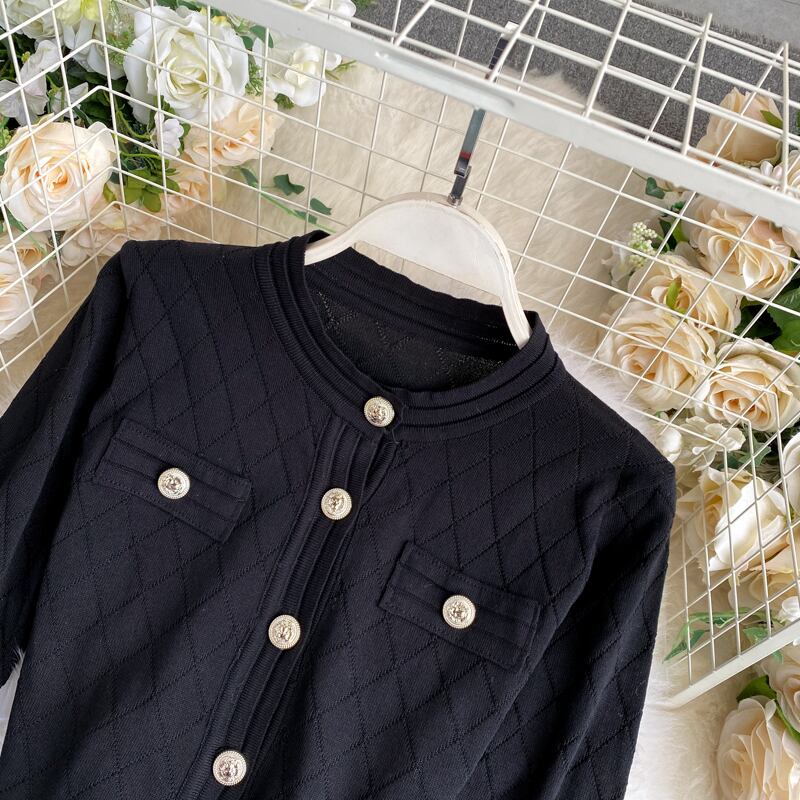 黒長袖ボタン セーター トップとスカート スーツ女性ニット 2 点セット 2022 秋のファッション レディース クラブ衣装 ロング ブラック オータム 秋物 Abe12238479007