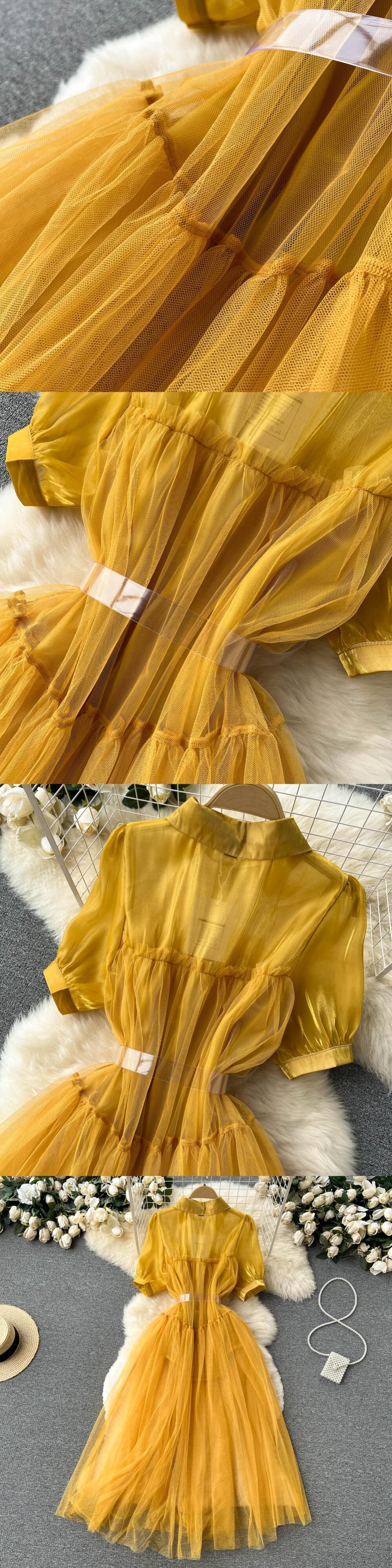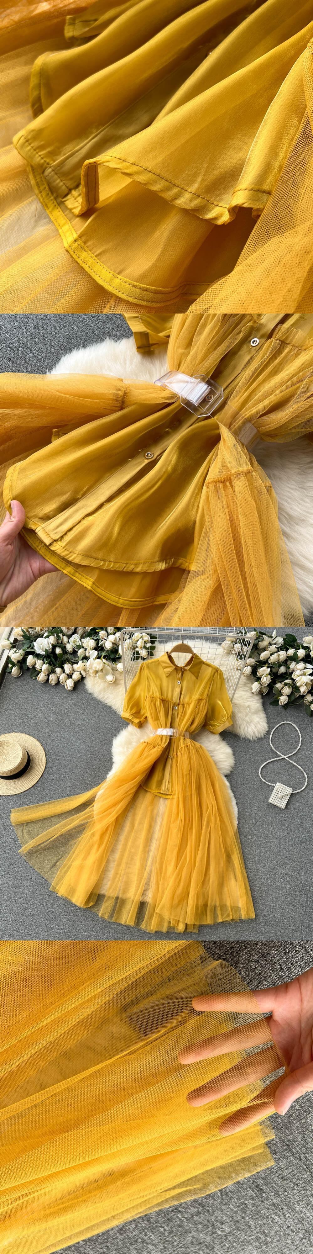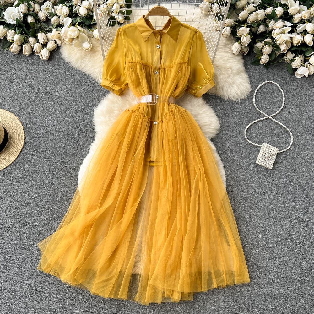 夏のパッチワーク ドレープ ドレス シースルー ウエスト半袖プリーツ シャツ Vestidos ベルト付き ショート ハーフスリーブ サマー 夏物 ハーネス Abe36925911706