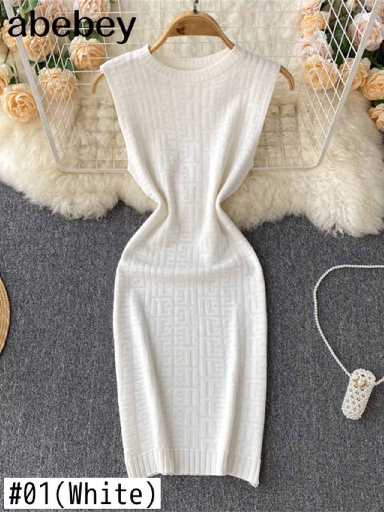 女性の夏のニットドレス 2022 タンクシックなニットサンドレスパーティースリム A ライン中空アウトセクシーなドレス サマー 夏物 Aライン Abe46215274725