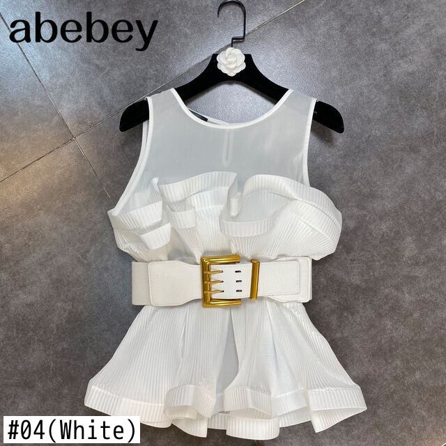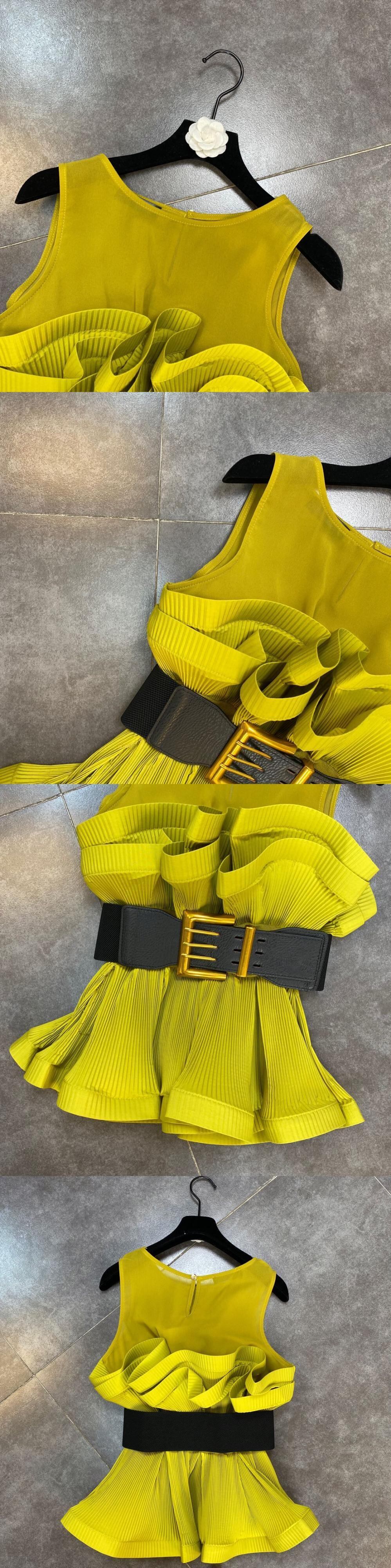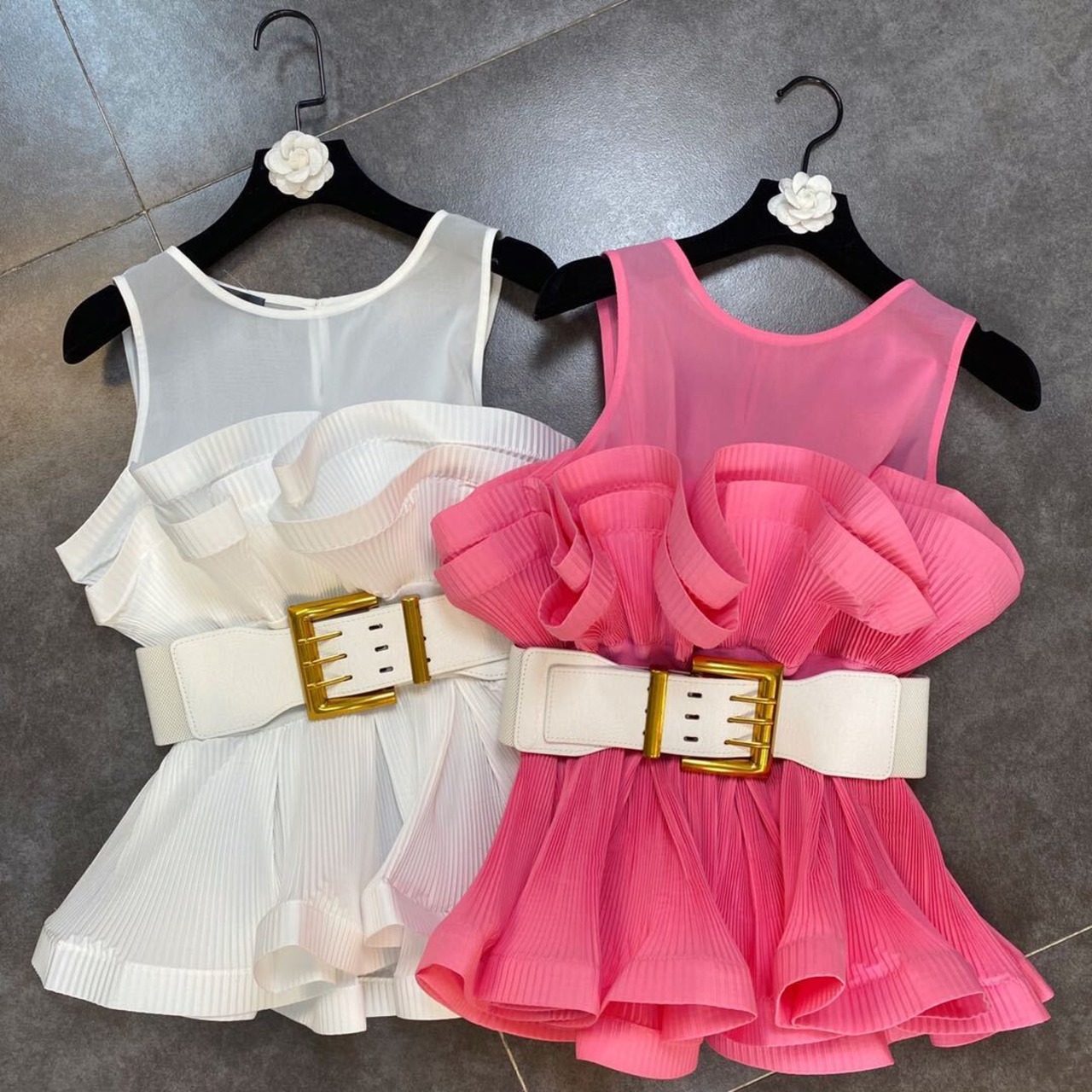 2022 夏ノースリーブ O ネック フリル ショート スリム ブラウス ベルト付き女性ストリート潮 ラッフル サマー 夏物 ハーネス Oネック Abe46520890108