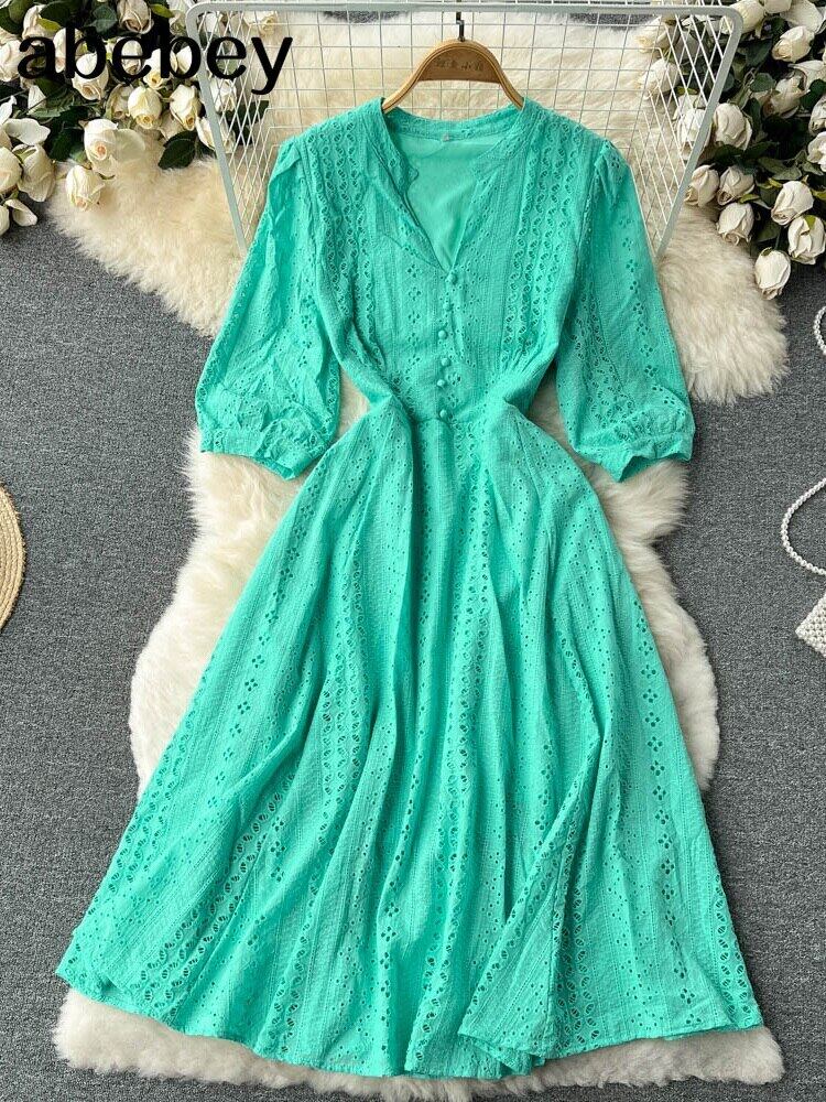 サマードレスセクシーなランタンスリーブミッドカーフドレスビーチボヘミアンレディースサマーサンドレス2022 Vestido 夏物 Abe43007340382