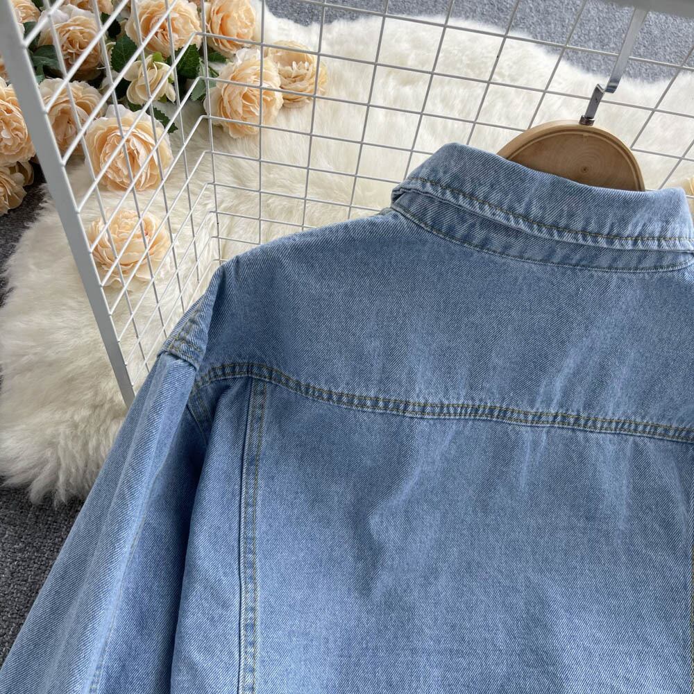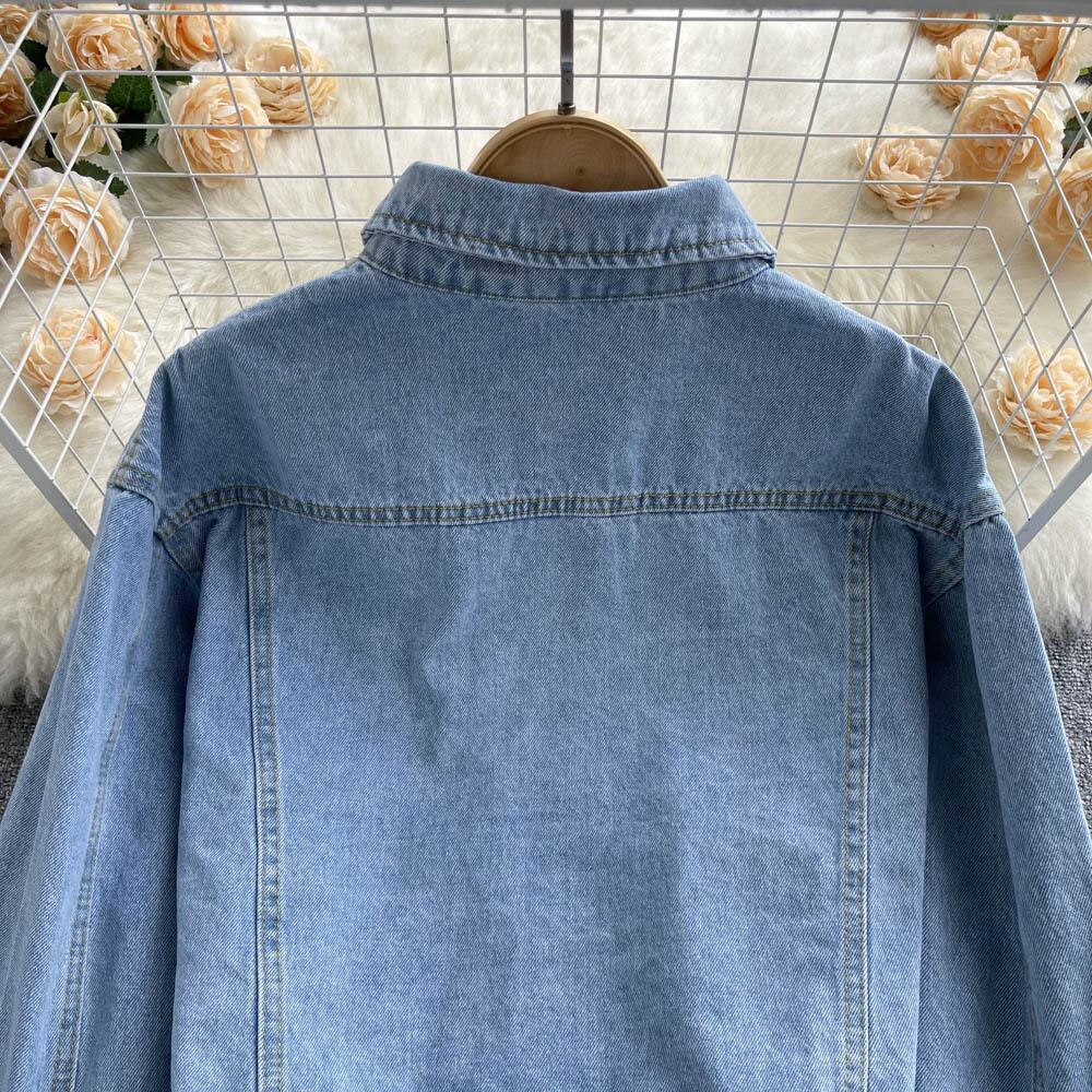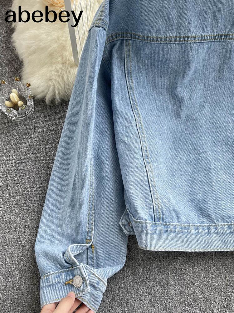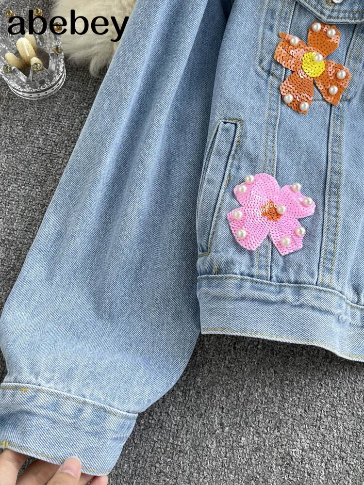 刺繍花女性の綿のジャケット長袖ルーズショートコートシングルブレスト女性ジーンズジャケット ロング コットン フラワーデザイン Abe64404405199