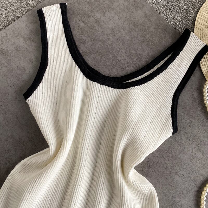 夏の女性のパッチ O ネックタンクトップボディコンニットボタンシンプルなストレッチキャミソールノースリーブ Tシャツ女性 サマー 夏物 Oネック Abe16748432887