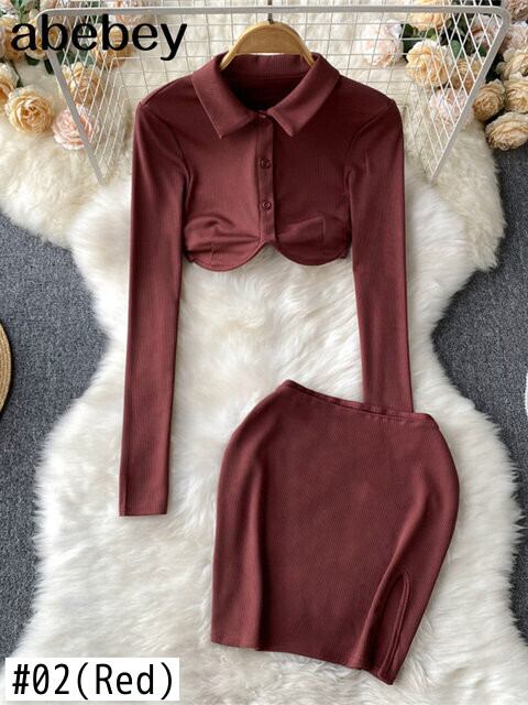 長袖セクシーな衣装の女性の夏のスカートセットリブクロップトップ 2 点セットレディース衣装クラブパーティーコーデセット ロング サマー 夏物 Abe85296270005