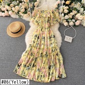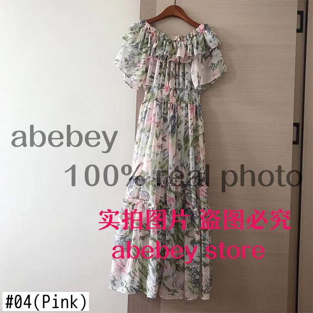 自由奔放に生きる花柄セクシーなフリル夏オフショルダーシフォンロングドレスパーティー弾性ウエスト女性カジュアルビーチホリデーチュニックドレス ラッフル エラスティック 伸縮 サマー 夏物 Abe66956241114
