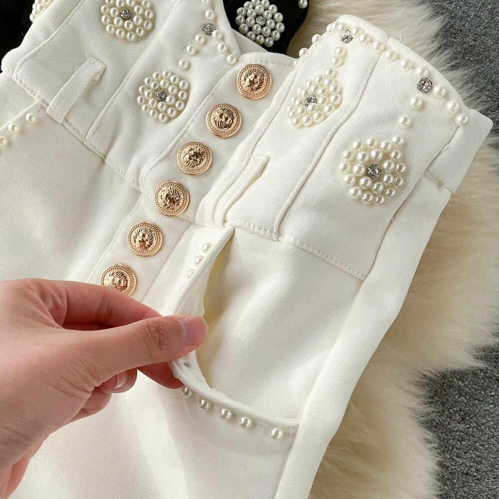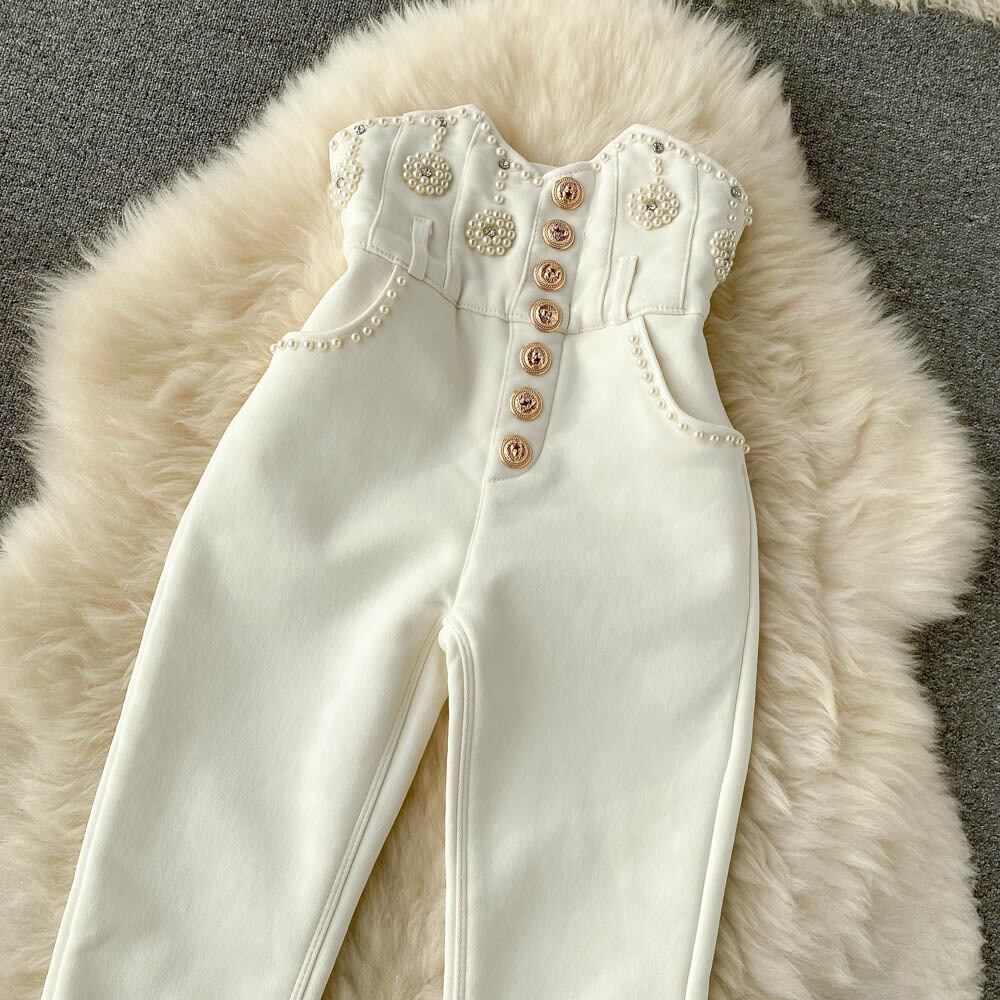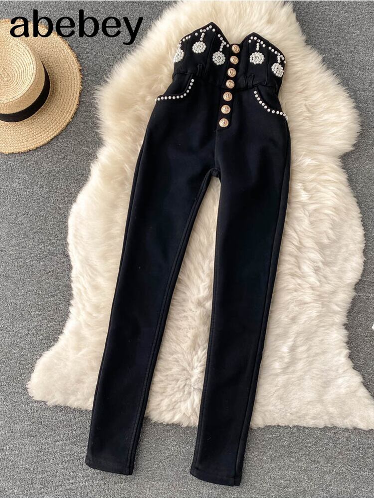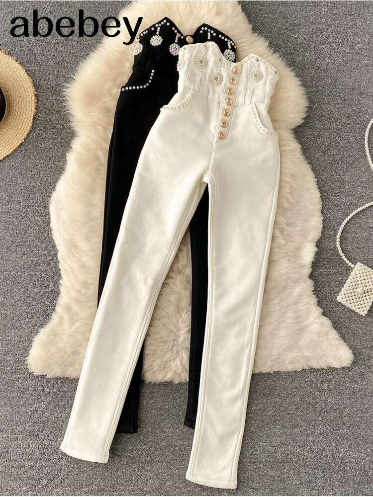 冬のズボンの女性のウエストスキニーパンツ春のシックなビーズストリートロングパンツ スプリング 春物 ウィンター 冬物 Abe30539447839