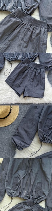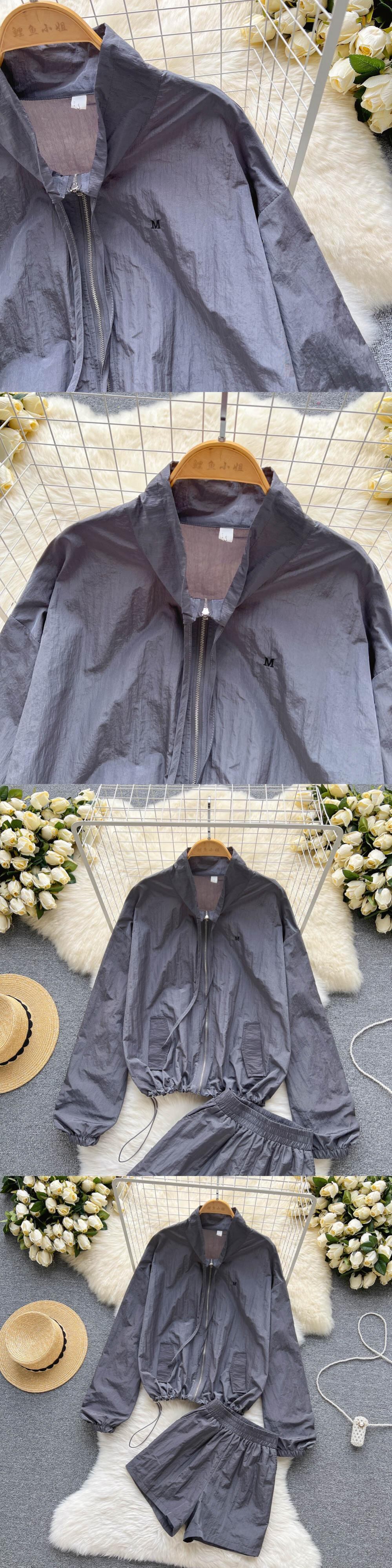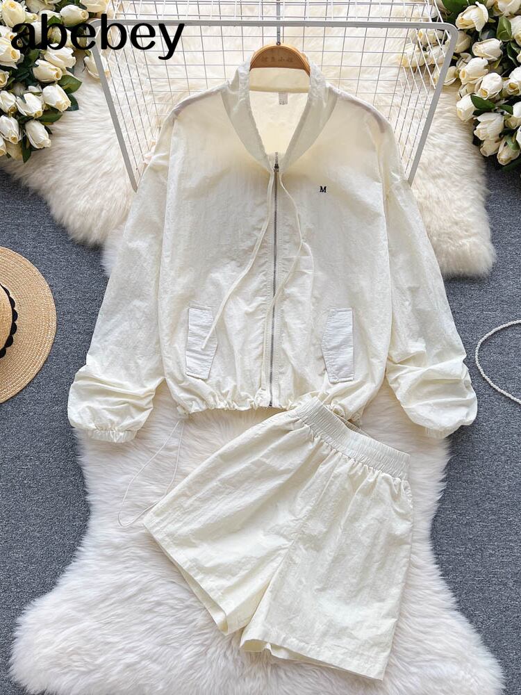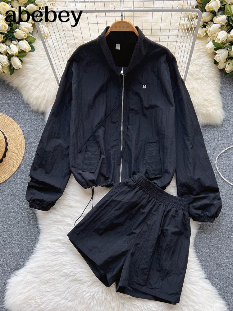 女性トラックスーツショーツセット夏長袖コートとミニ巾着ショーツスーツラウンジウェアツーピースセット ロング サマー 夏物 ブルマー Abe20747316577