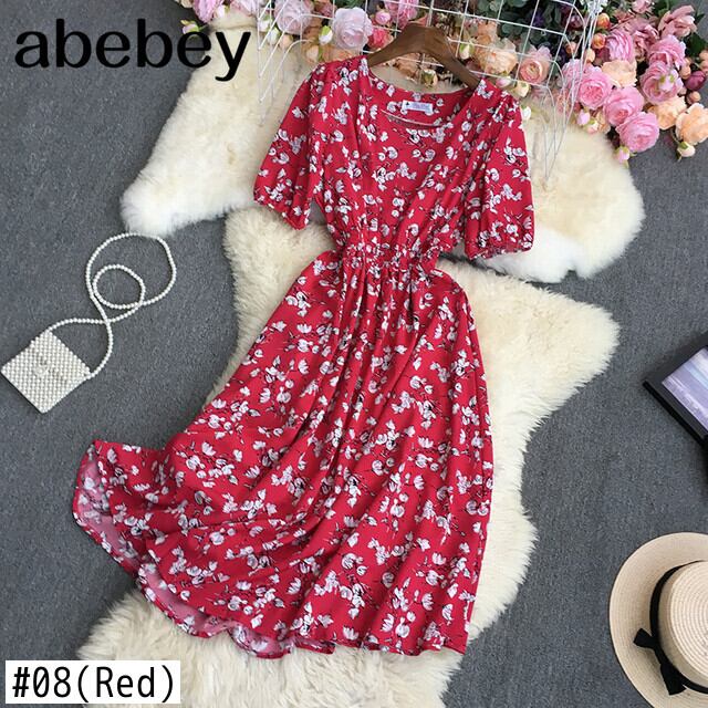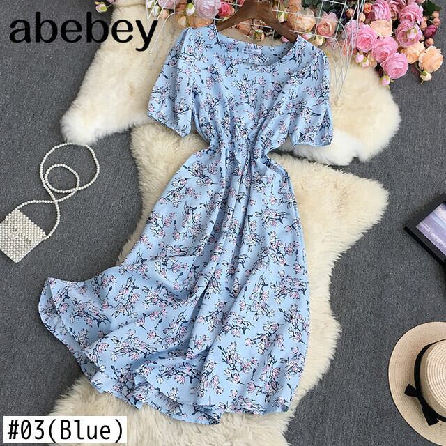 2022 春秋の女性 O ネック半袖ドレスハイウエストプリーツ花柄プリントミッドレングス A ラインドレス ハイウェスト ショート ハーフスリーブ スプリング 春物 オータム 秋物 Oネック Aライン Abe8984098850