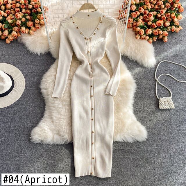 中空ニットドレス女性長袖弾性スリムペンシルドレス秋冬ボディコンセータードレス ロング エラスティック 伸縮 オータム 秋物 ウィンター 冬物 Abe40677676407