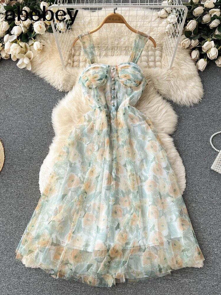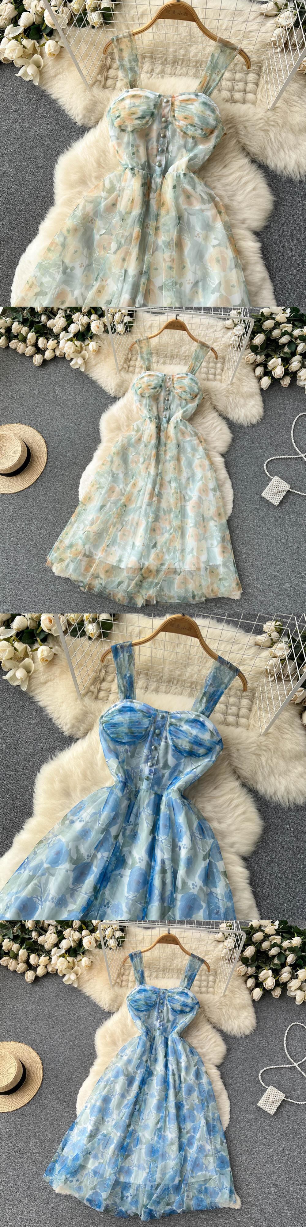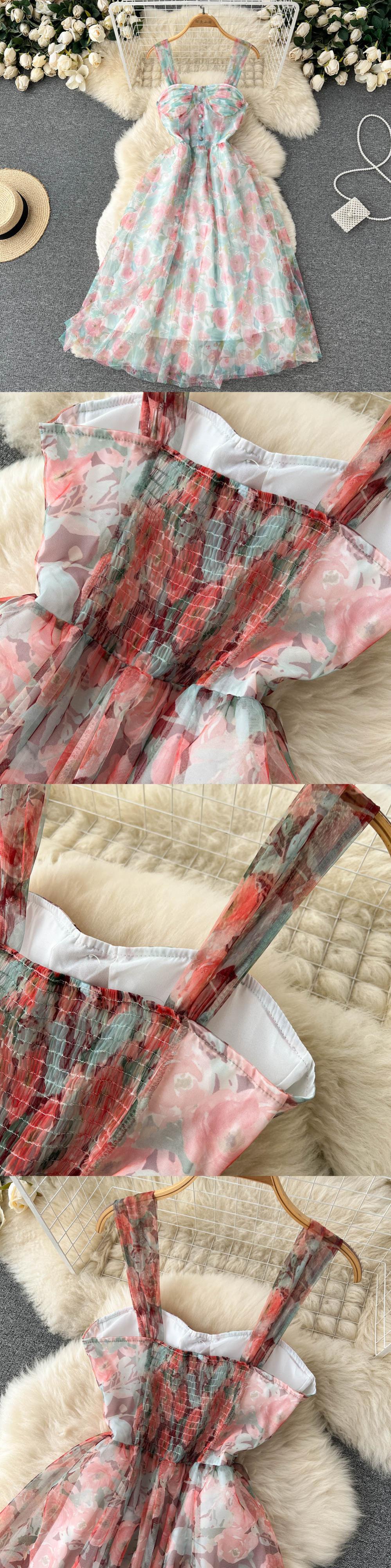 女性花スパゲッティストラップドレス弾性シャーリングセクシーな中空背中の開いたパーティードレス夏自由奔放に生きる休暇ビーチサンドレス エラスティック 伸縮 サマー 夏物 花柄 Abe90402633490
