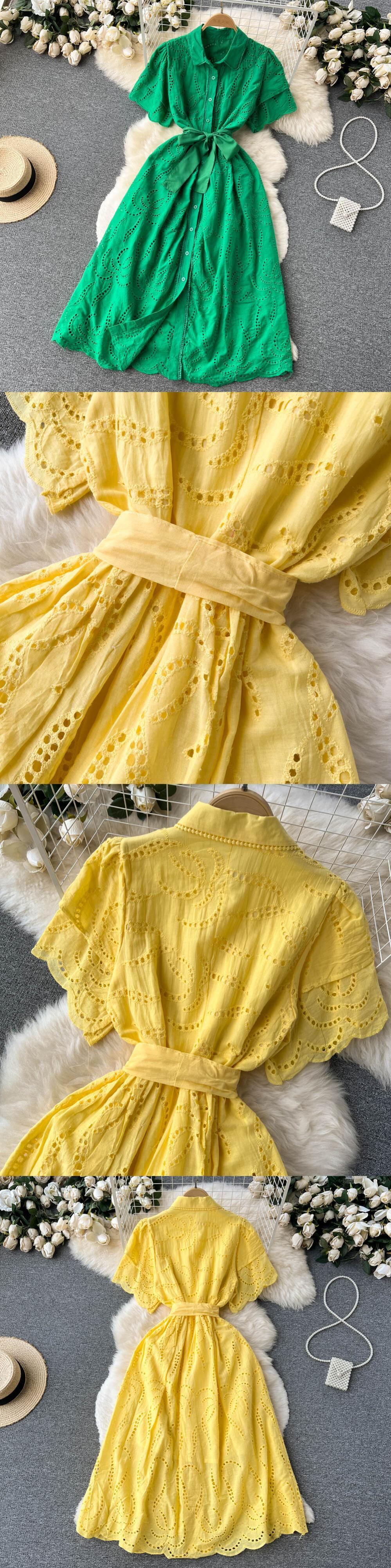夏のセクシーな中空アウト レース ロング ドレス女性グリーン/ピンク/ホワイト半袖 A ライン パーティー マキシ ローブ ショート ハーフスリーブ サマー 夏物 Aライン Abe20648696275