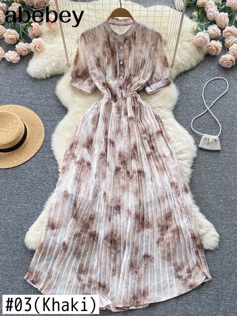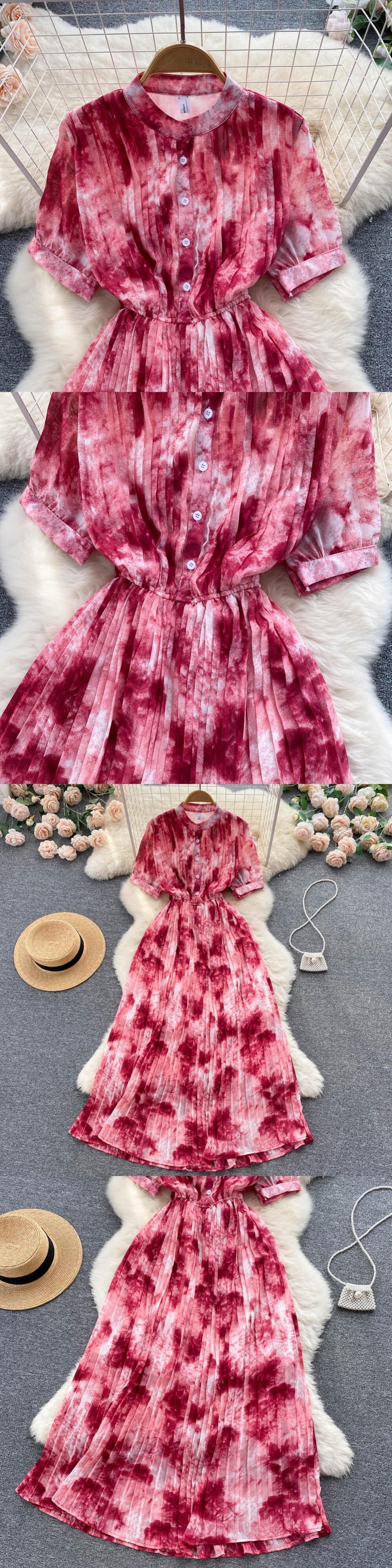 女性プリーツプリントフローラルドレス半袖シングルブレスト A ラインドレス夏のストリート Vestidos ショート ハーフスリーブ サマー 夏物 花柄 Aライン Abe15554107179
