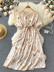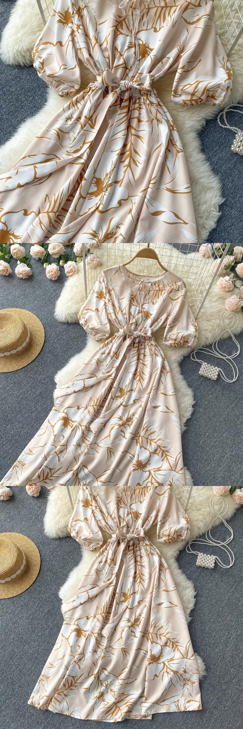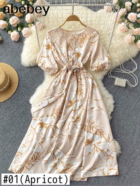 2022 女性パーティー服花ドレス因果ベルト A ラインドレス夏ミディビーチサンドレスローブ サマー 夏物 ハーネス 花柄 Aライン Abe84924644182