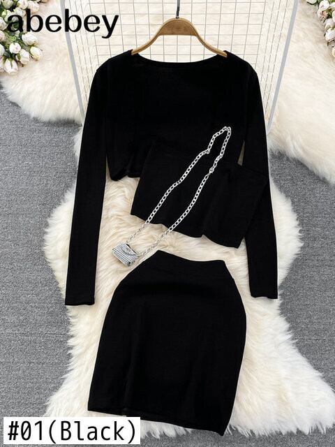 女性秋ニットセットセクシーなオフショルダーショートストラップトップス + 長袖カーディガン + スリムスカートスリーピーススーツ ロング オータム 秋物 Abe94934119556
