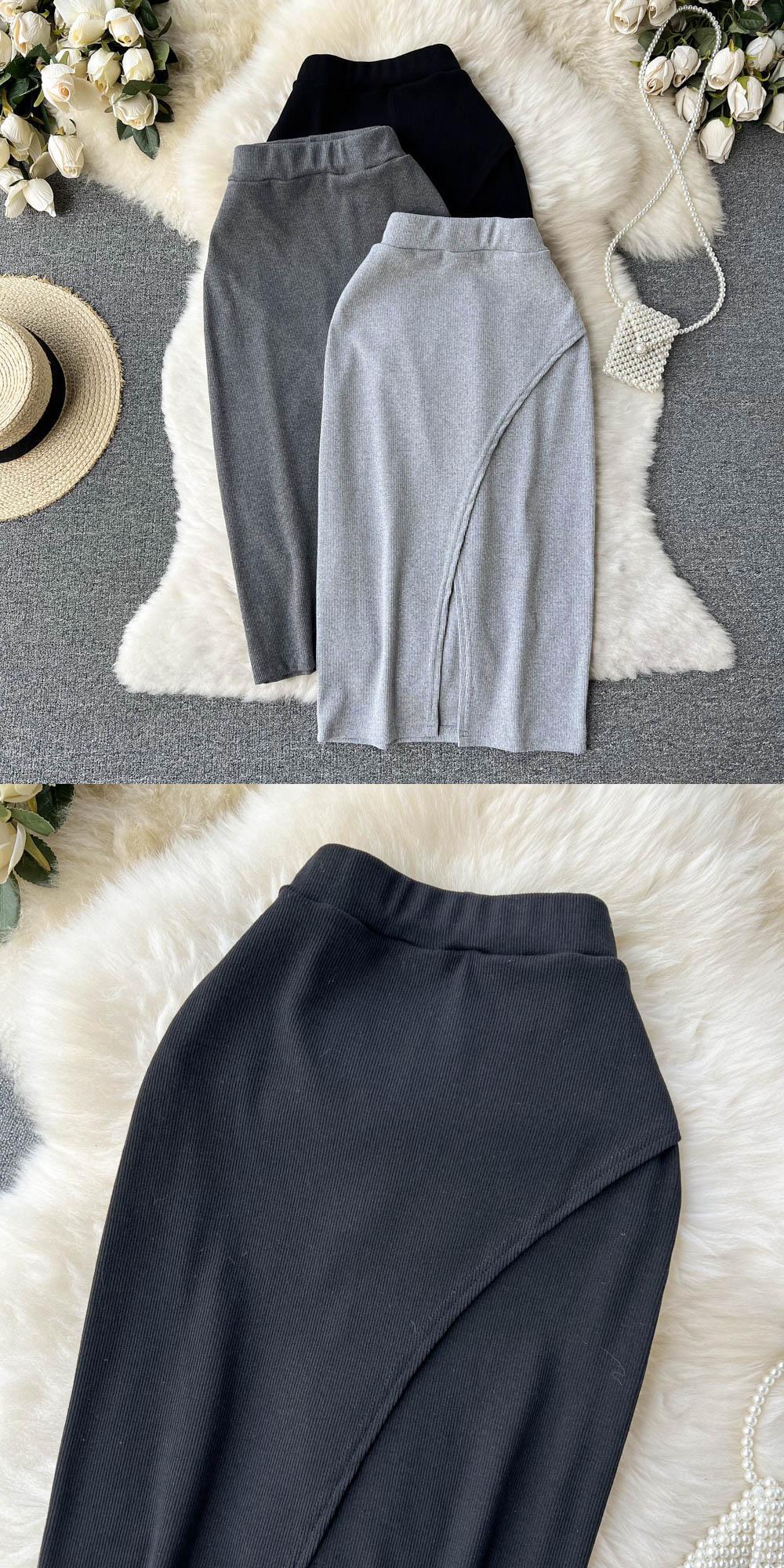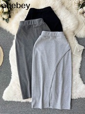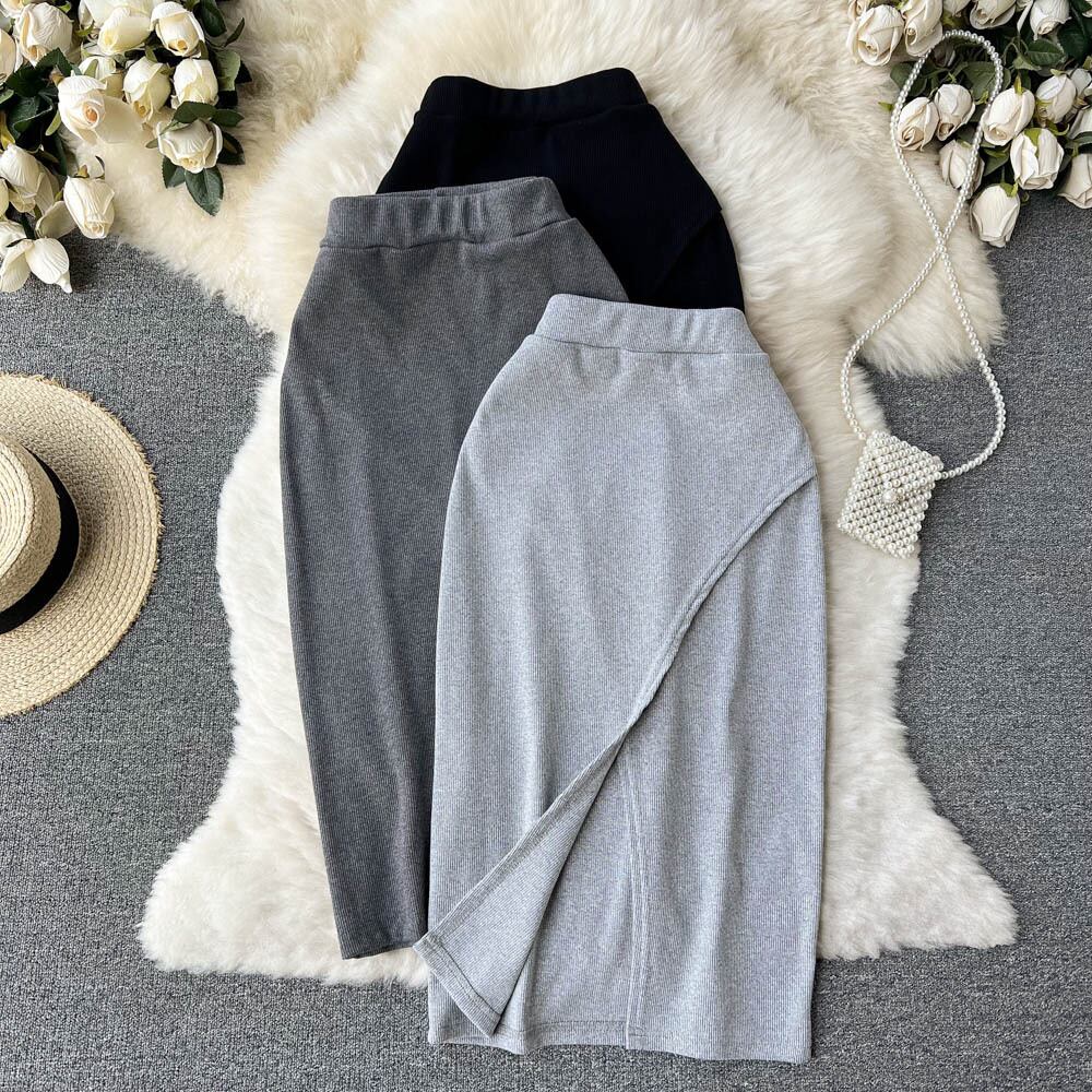 不規則な 2022 女性のスエード シース ミディ スカート ウエスト無地シックなラップ スカート バック スプリット ペンシル スカート スウェード ソリッドカラー Abe56219037548