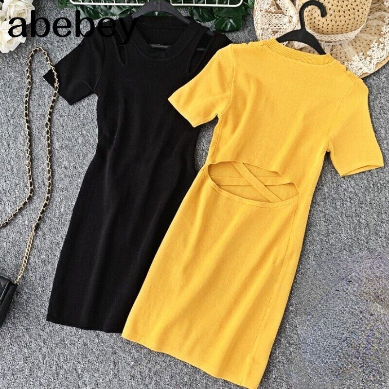 2022 スリム O ネック夏中空アウトニットドレス女性 Vestido デ · フェスタ半袖パーティーボディコン Vestidos ショート ハーフスリーブ サマー 夏物 Oネック Abe41383180208