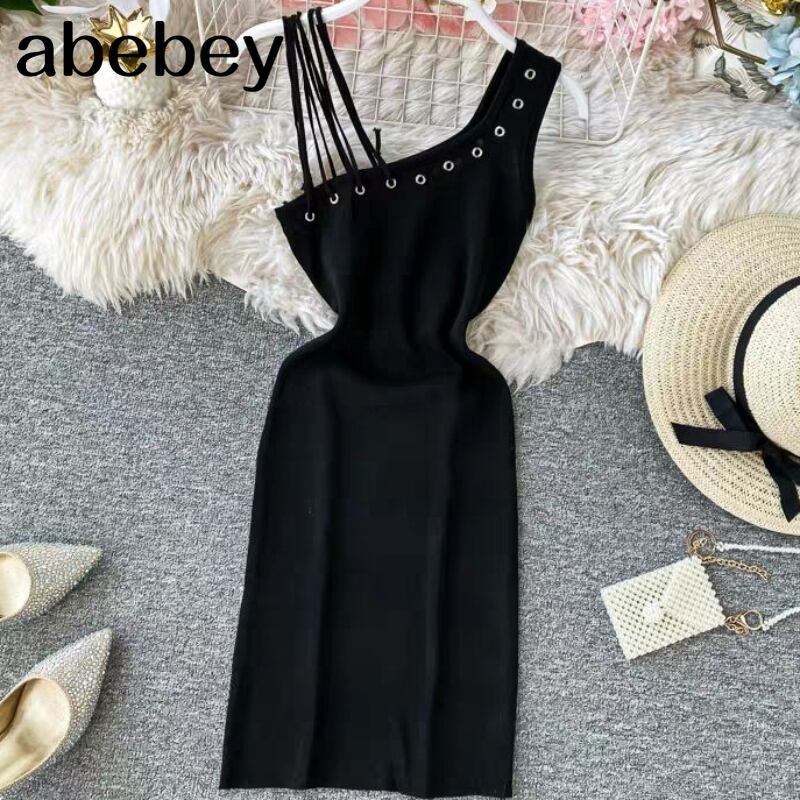 2022 新しい女性 Vestidos 夏セクシーな Blackless ワンショルダードレス女性ミニパーティードレス ブラック サマー 夏物 Abe83535278917