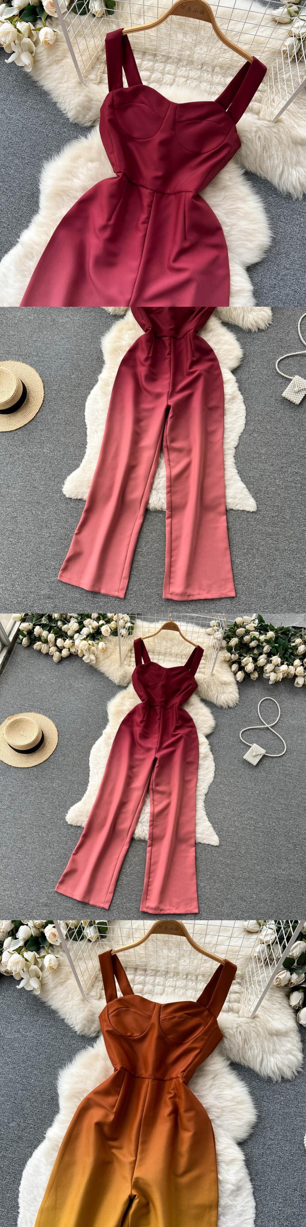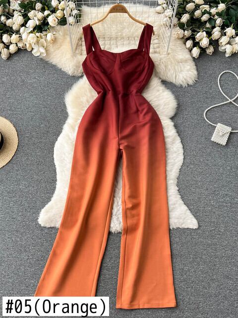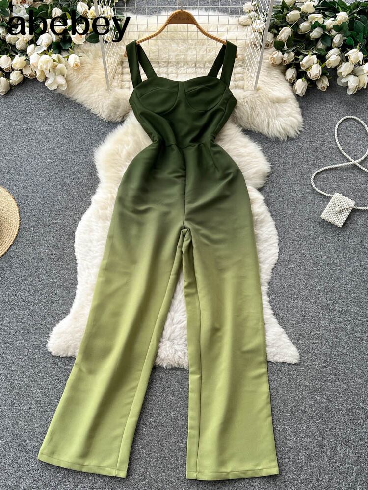夏のジャンプスーツ女性遊び着ノースリーブスパゲッティストラップ背中の開いたセクシーなクラブウェアロングロンパースオーバーオール サマー 夏物 Abe45156073316