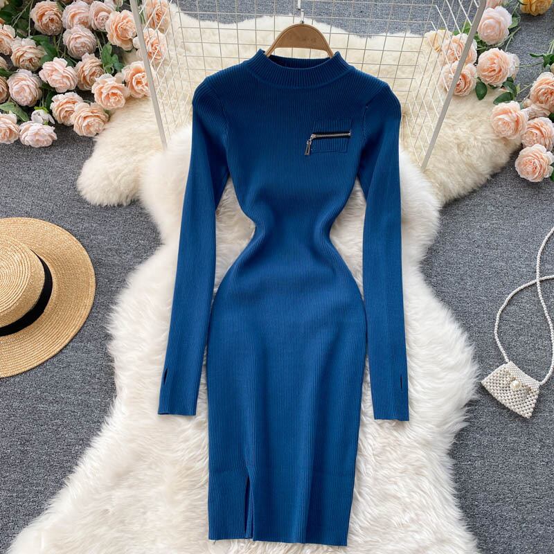 秋のニットドレス女性のセクシーなボディコンスリムシースドレス 2022 冬暖かいシックなスプリットセータードレス オータム 秋物 ウィンター 冬物 Abe55667121727
