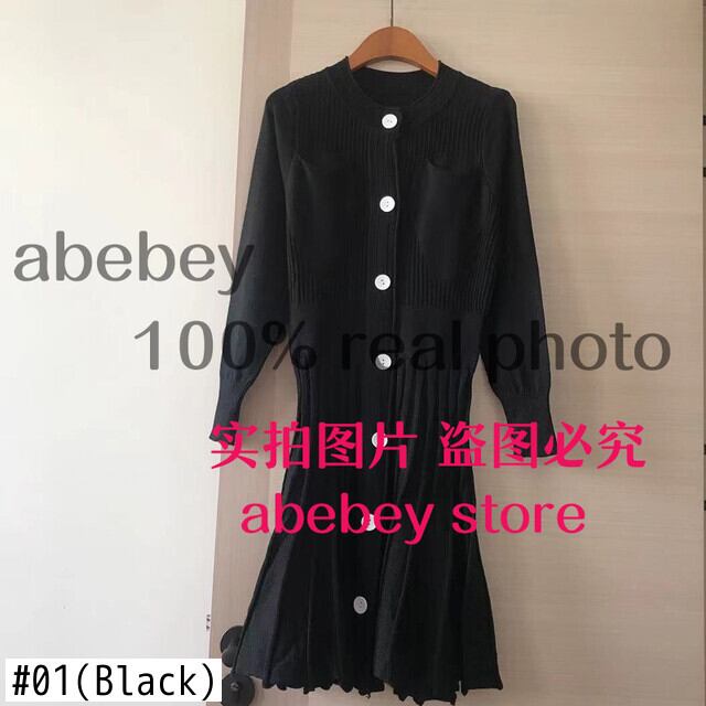 女性フレンチニットドレス長袖シングルブレスト A ラインドレス秋のストリートセータードレス ロング オータム 秋物 Aライン Abe74497600525