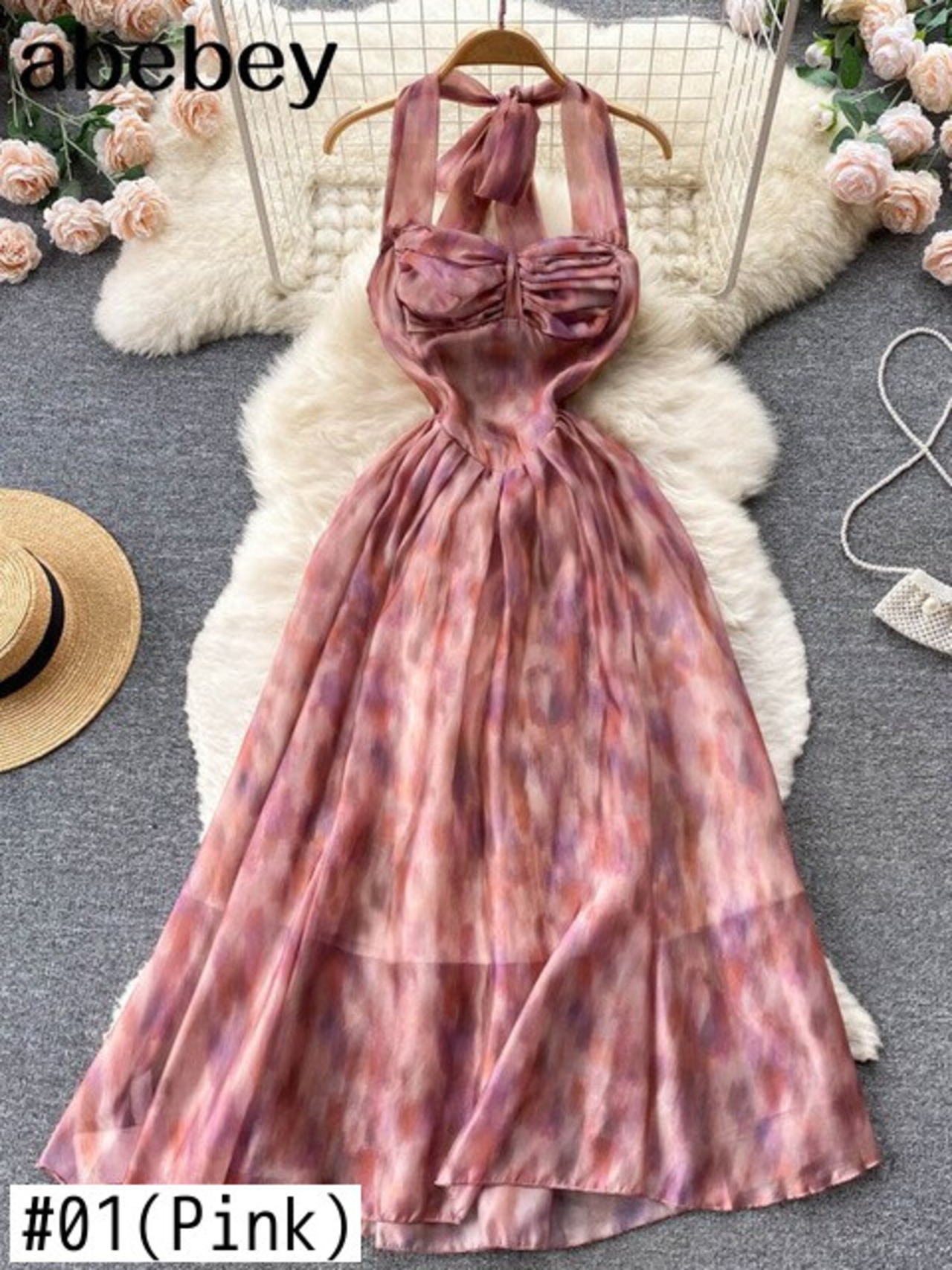 夏マキシロングドレス女性のセクシーなホルター自由奔放に生きるストライプノースリーブビーチスタイルストラップサンドレス Vestidos サマー 夏物 Abe15517704726