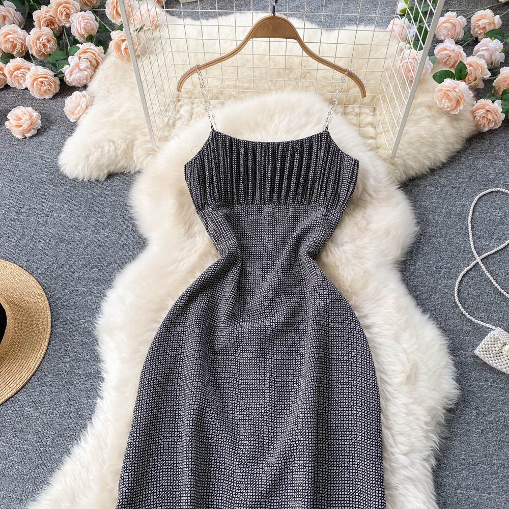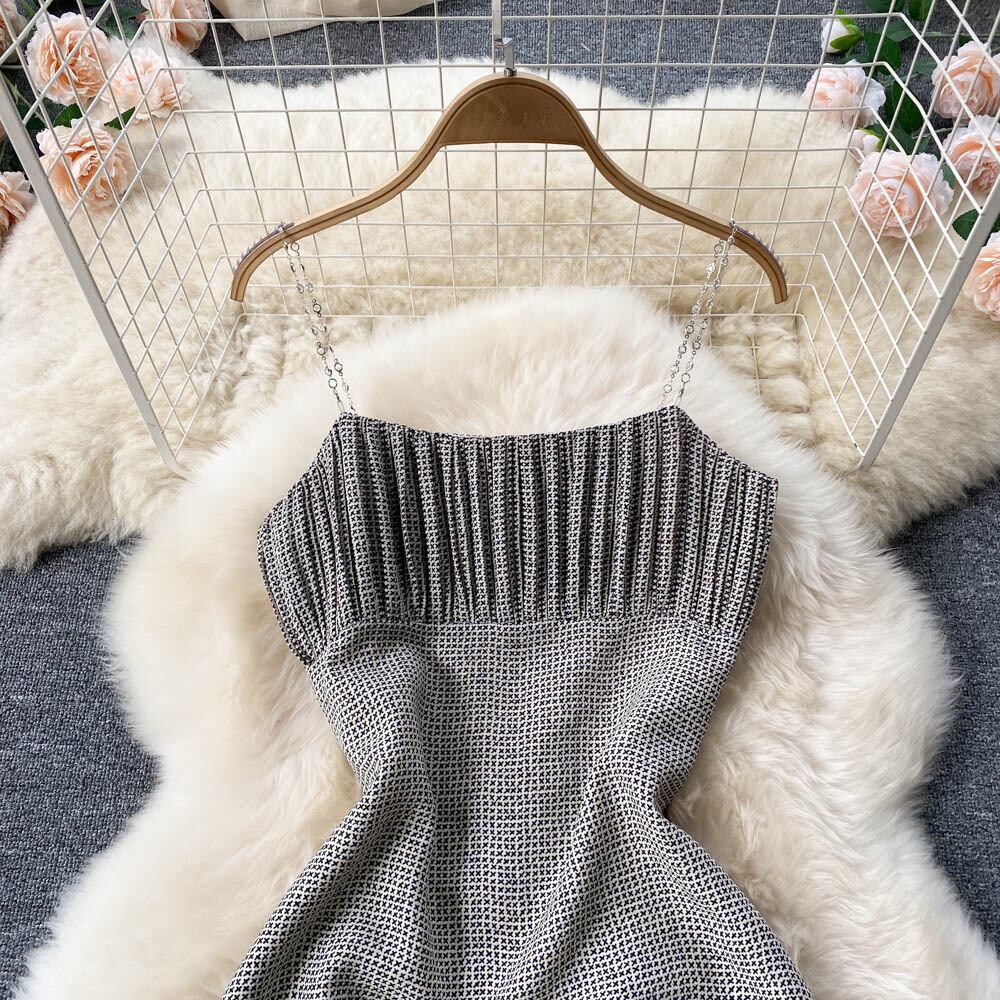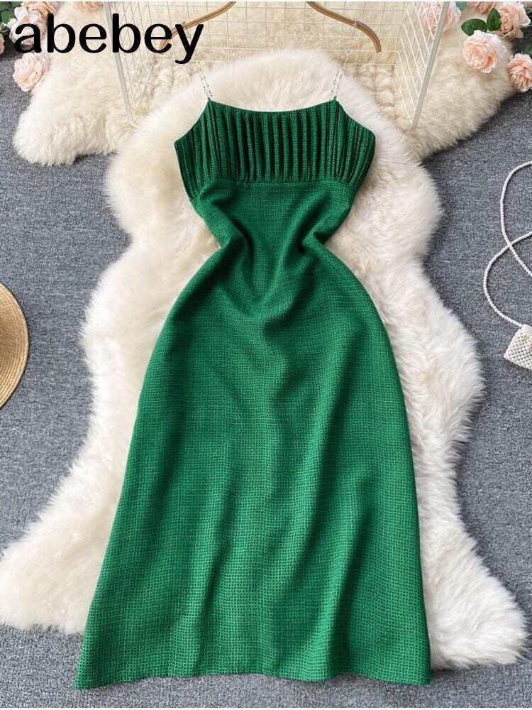 2022 女性の夏のチェーンストラップセクシーなドレスノースリーブサンドレス背中の開いたパーティーミディロングドレス サマー 夏物 Abe36424837054
