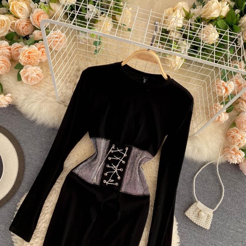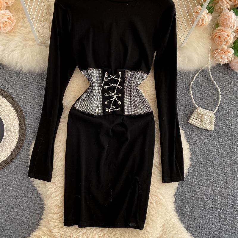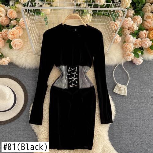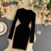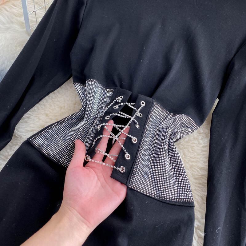 スパンコール vestidos 女性長袖セクシーな vestido feminino ボディコン パーティー ドレス o ネック エレガントな膝丈ローブ ファム ロング Oネック フェミニン Abe94986057875