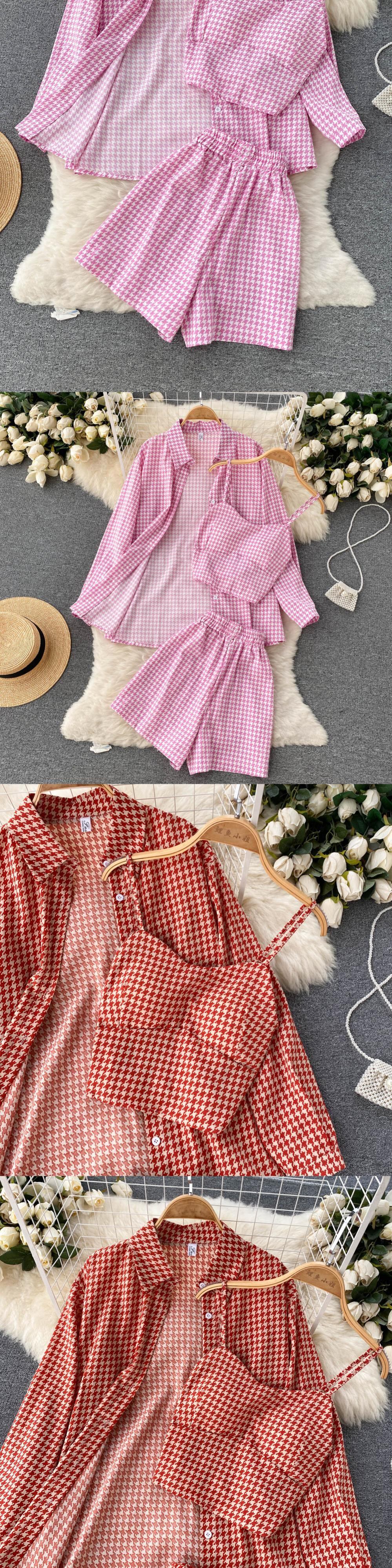 女性 3 点セット春秋赤/黒/緑 2022 シングルブレストコート + キャミソール + ワイドレッグパンツスーツ ブラック スプリング 春物 オータム 秋物 ワイドパンツ グリーン Abe60896607022