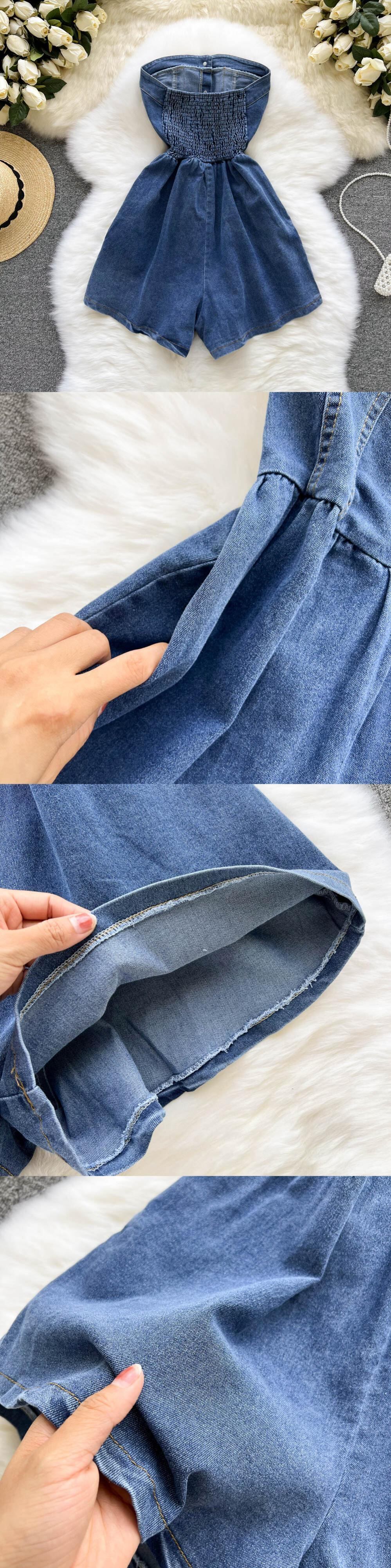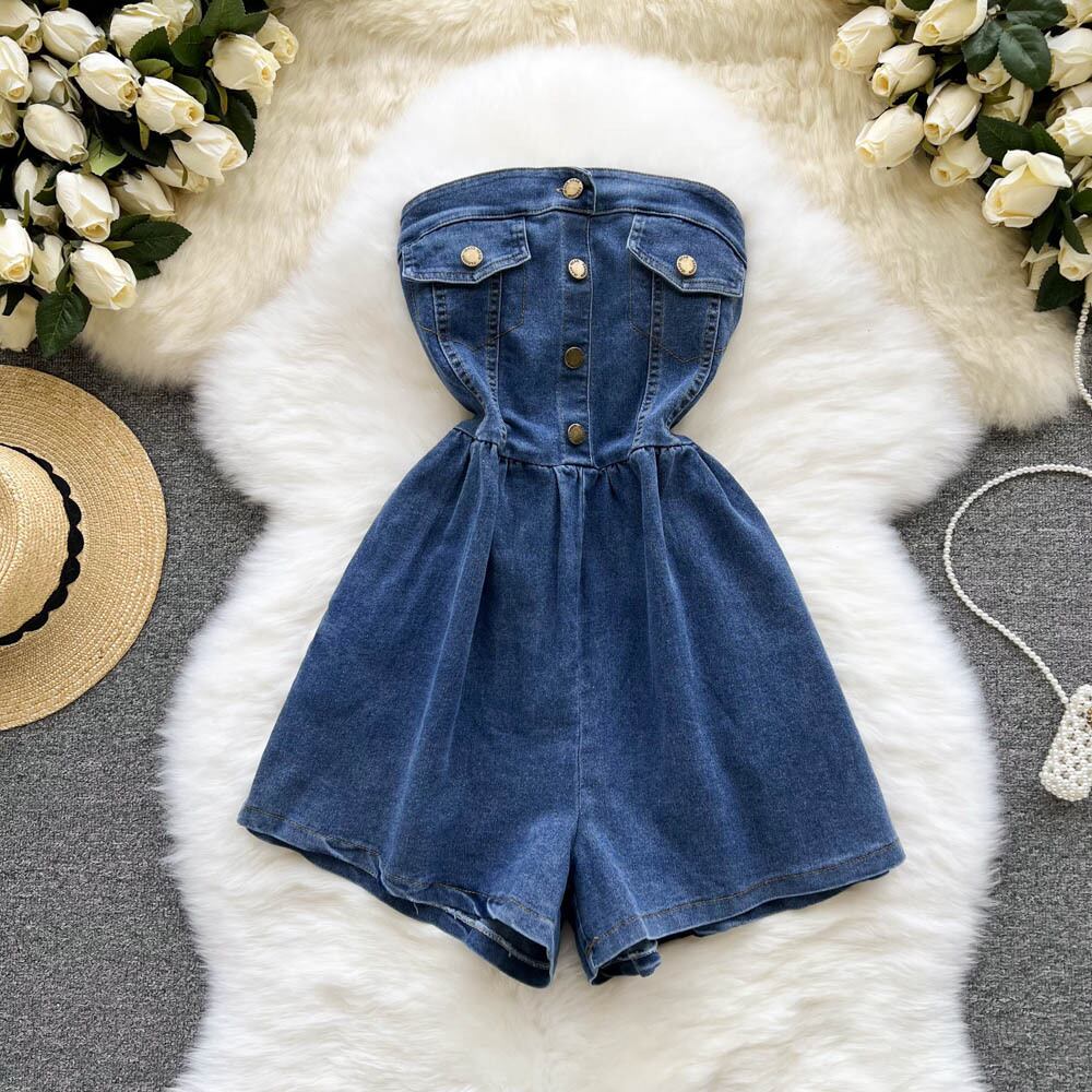 女性チューブトップデニムロンパースバックレスノースリーブセクシーな気質ジッパーファッション夏 2022 サマー 夏物 Abe51110358660