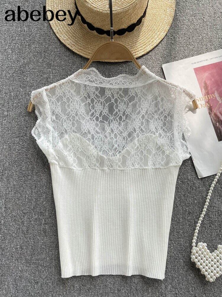 タンクトップ女 ホワイト レース ブラウス サマー 夏物 オフショルダー Abe36718997109