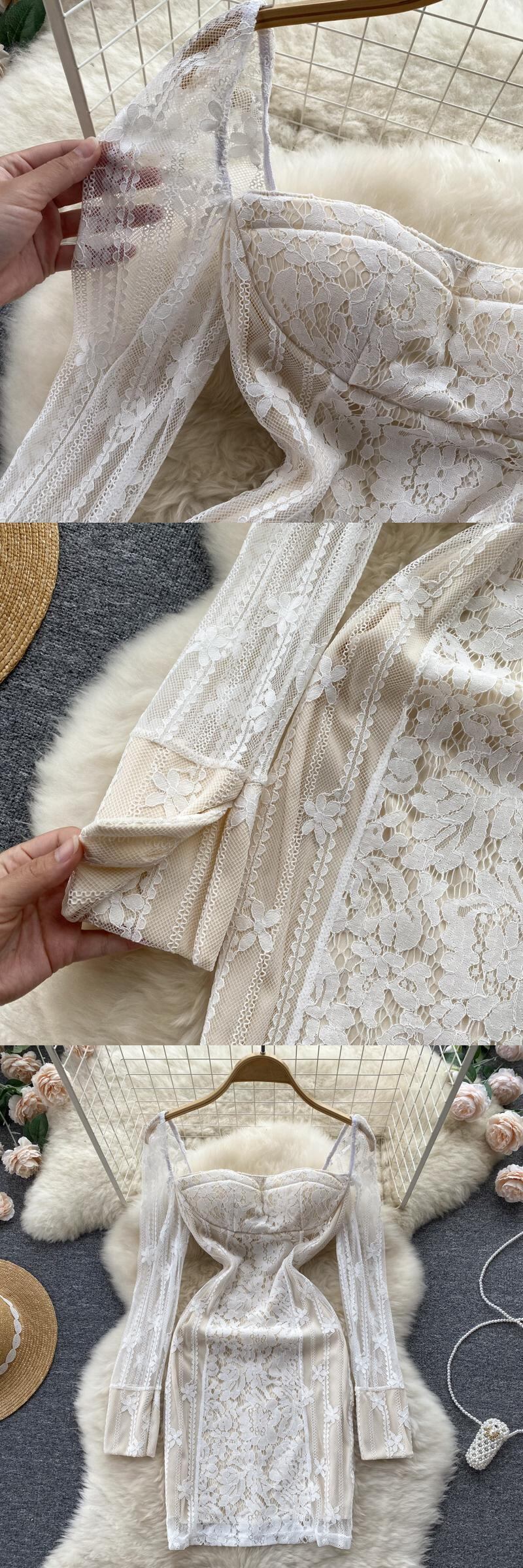 2022 春二重層メッシュミニドレス女性ランタンスリーブシャーリングボディコンドレスクラブウェアセクシーな黒背中 Vestido ブラック スプリング 春物 Abe48418542541