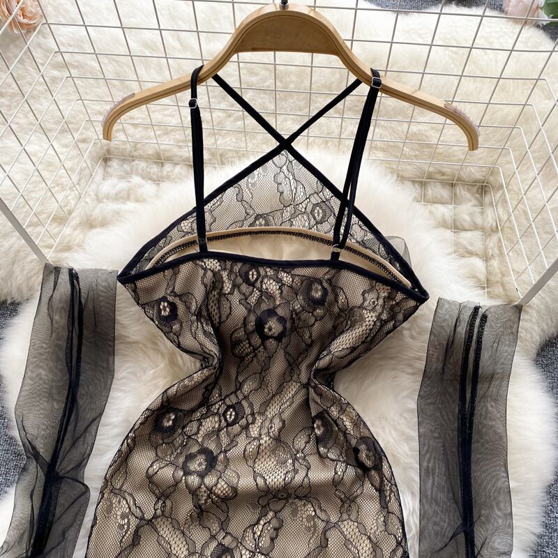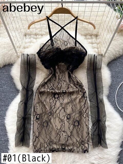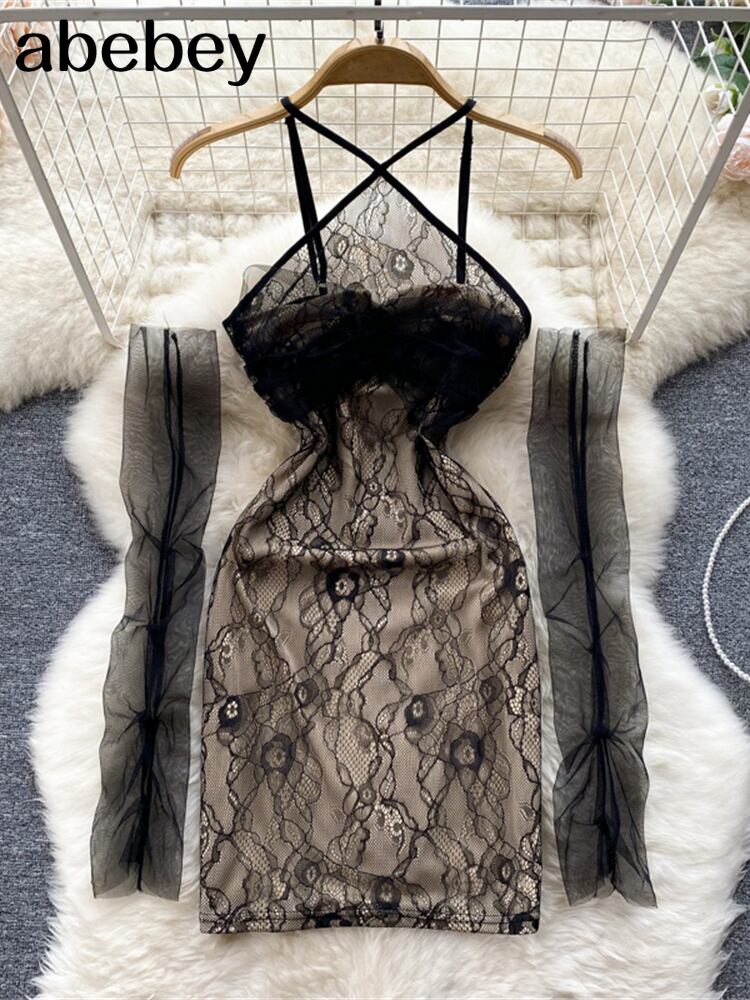 セクシーな中空アウト包帯女性ドレスメッシュ非対称ウエストミニドレス女性春スキニーストリート 2022 スプリング 春物 Abe5588437210