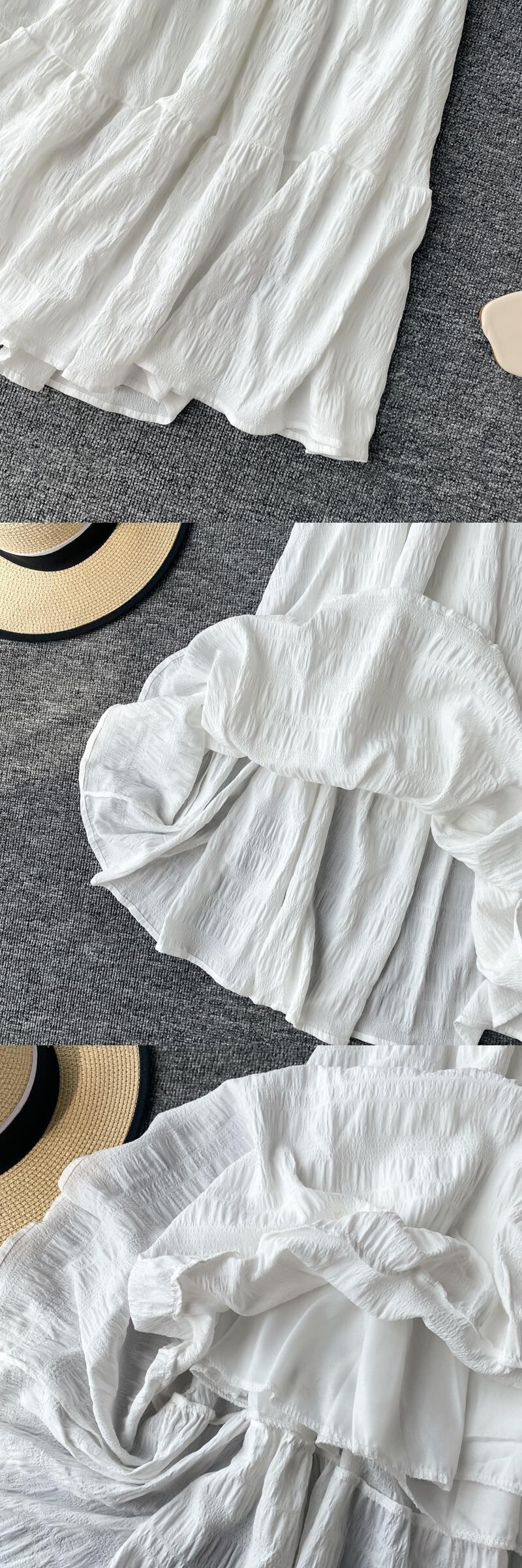 女性の白いドレス夏 V ネック シングルブレスト ショート フレア スリーブ ドレス 2022 シックなローブ ホワイト フレアスリーブ サマー 夏物 Vネック Abe26589707777