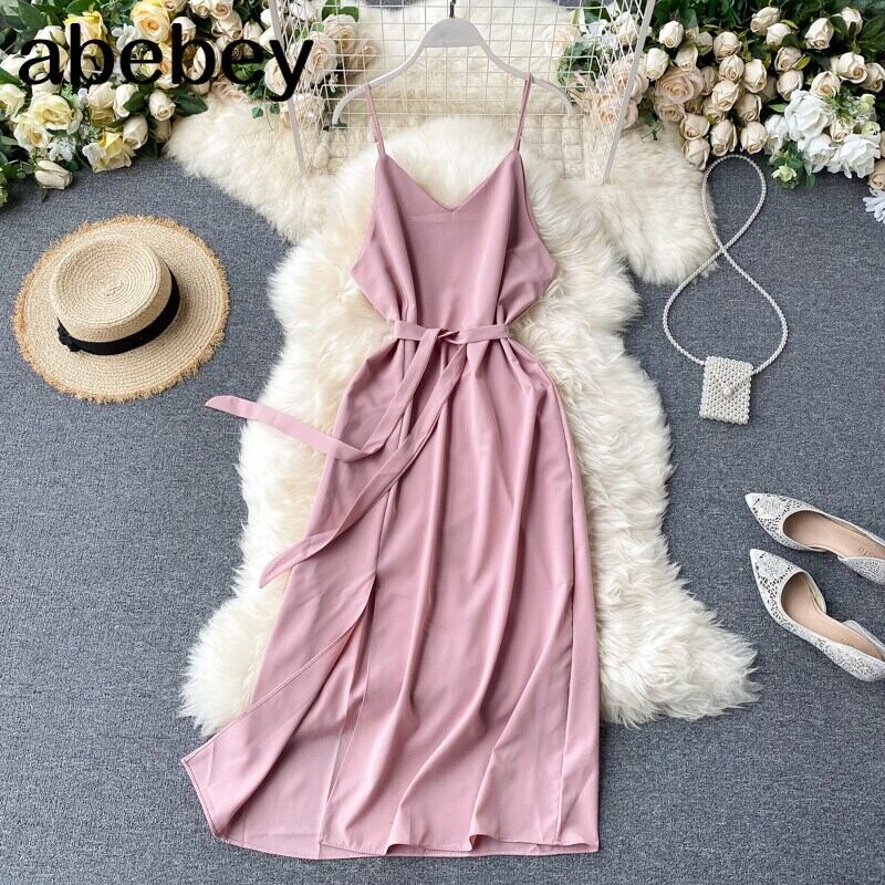 休日のスタイルのセクシーな V ネック スリット ロング ドレス女性の夏のエレガントな無地レースアップ ウエスト ドレス オフィス レディ サマー 夏物 Vネック 会社 学校 通勤や通学にも Abe55284596909