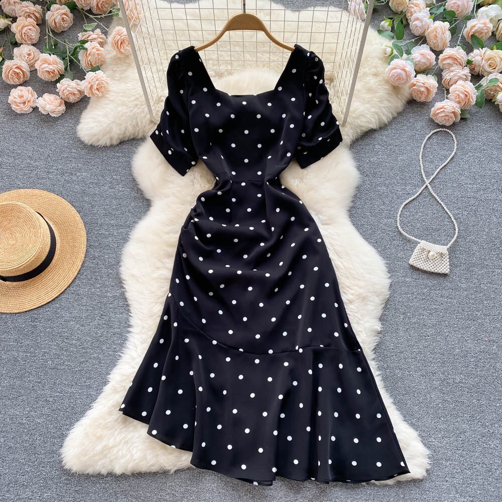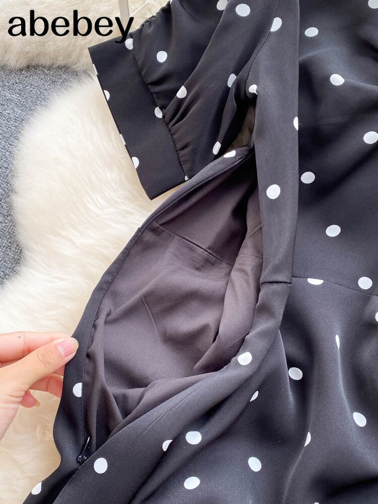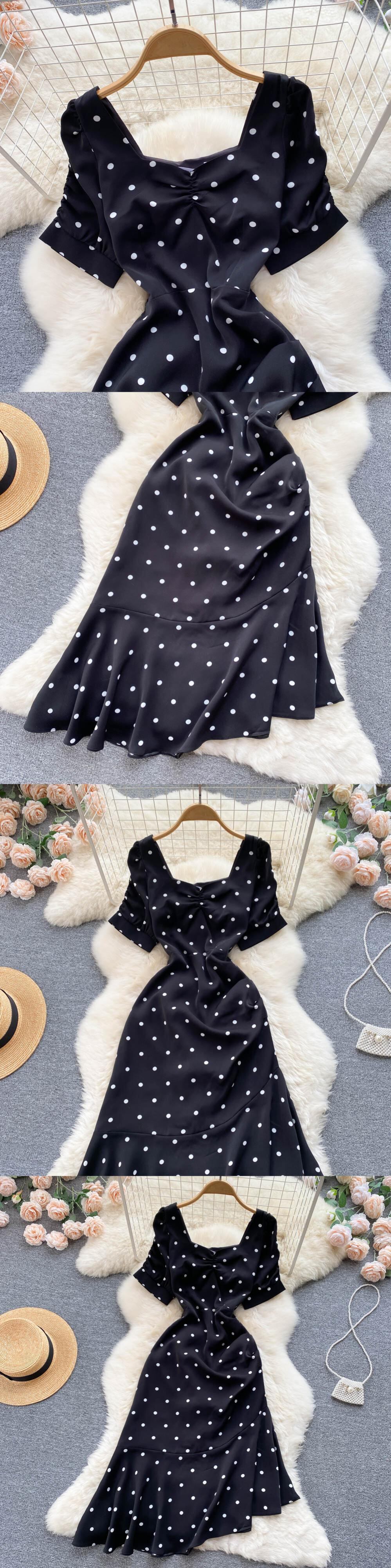 スクエアカラーポルカドットドレス女性ショートパフスリーブ甘い女の子の 2022 不規則な Vestidos 大人ガーリー スウィート キュート カジュアル スクウェア Abe22933298053