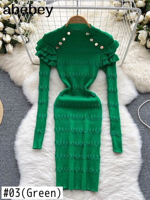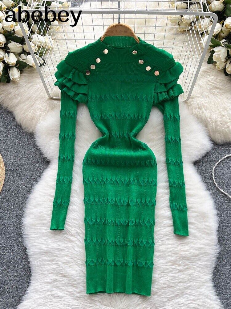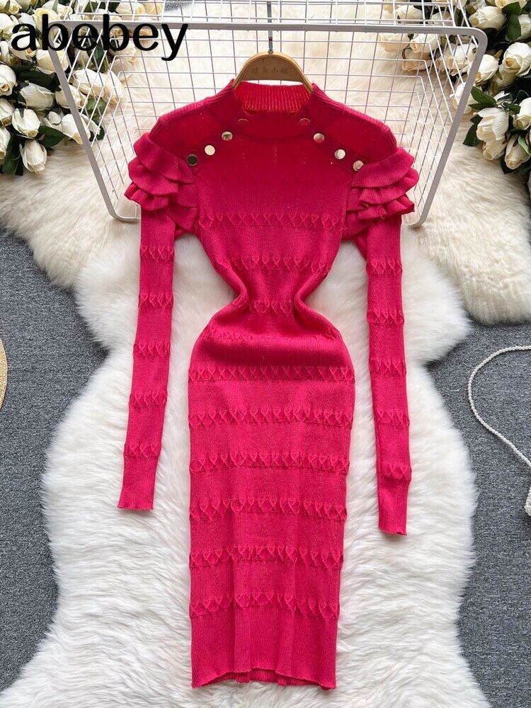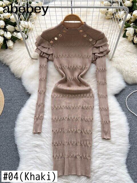 シニア フリル セーター ドレス ハーフカラー シース ミニ ロング ドレス 2022 無地ストリート ニッター ドレス ラッフル ソリッドカラー Abe50977051994