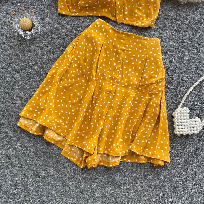 女性の夏のスーツセクシーなノースリーブストラップショートトップス + ウエストワイドレッグショートパンツ 2 点セット サマー 夏物 ワイドパンツ Abe70964477196