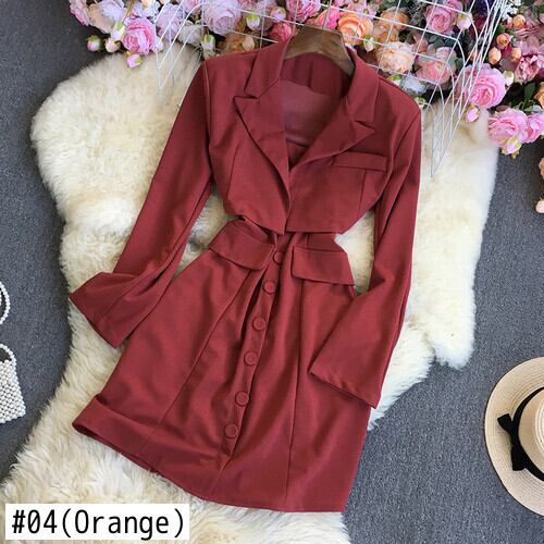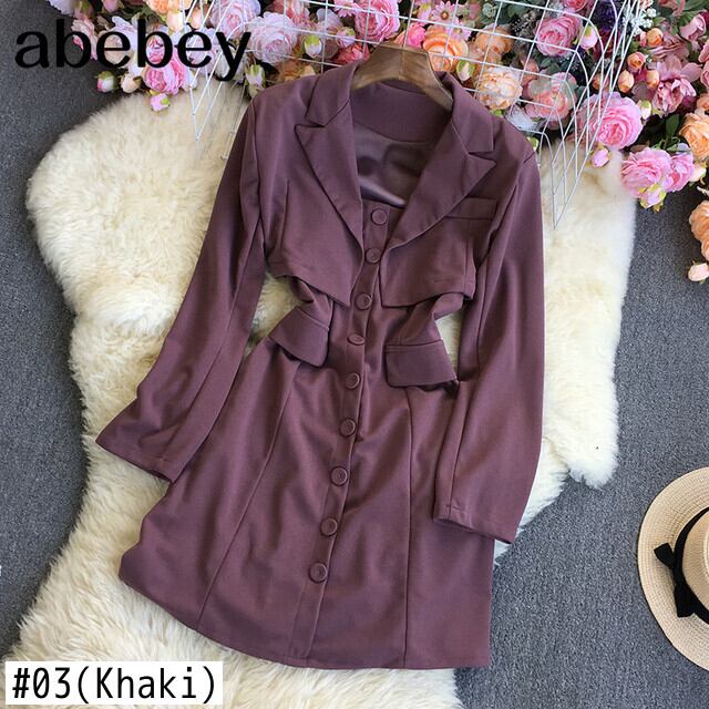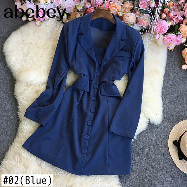 2022春秋のスーツカラー長袖ショートトップ+シングルブレストハイウエストミッドロングストラップワンピース2点セット ハイウェスト スプリング 春物 オータム 秋物 長めのストラップ Abe87680477414