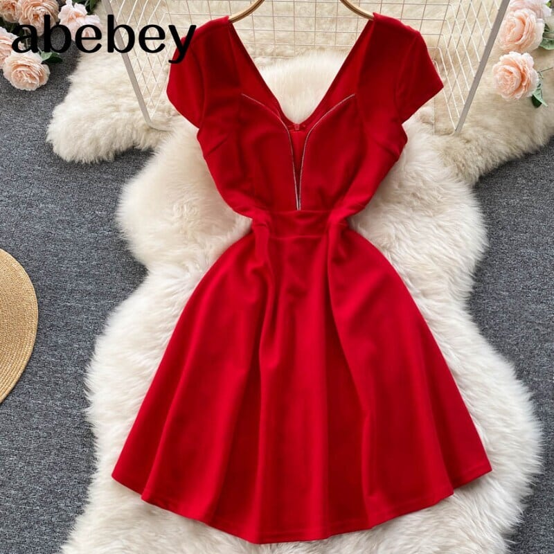 女性クラブパーティーミニドレスセクシーな V ネックドレス夏ソリッドストリート A ラインサンドレス 2022 サマー 夏物 Vネック Aライン ソリッドカラー Abe12445410109