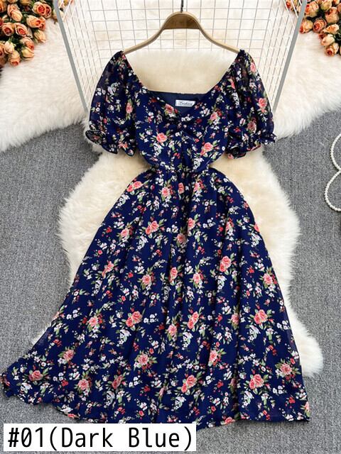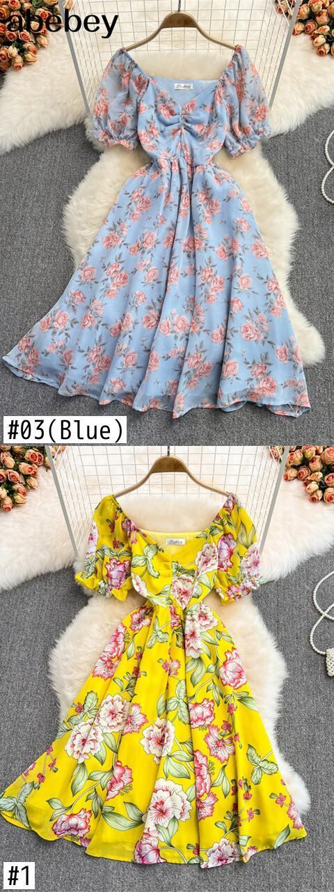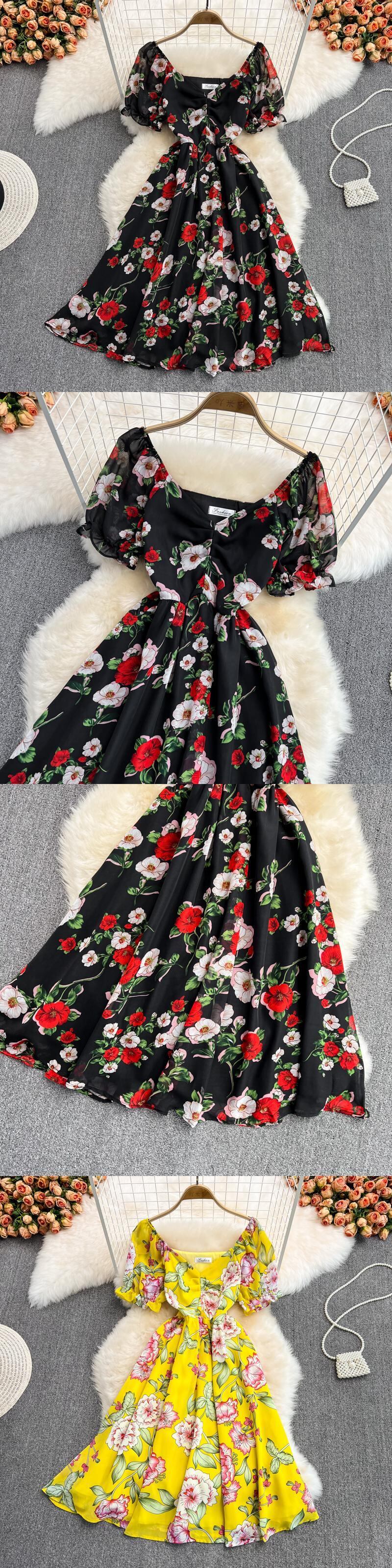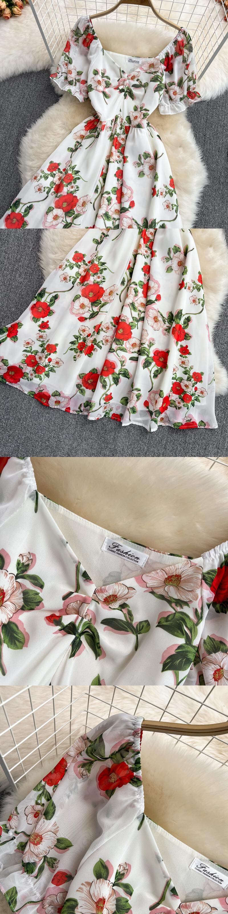 夏の女性のセクシーな花柄シフォン ドレス V ネック半袖ウエスト A ライン ビーチ Vestido パーティー ローブ ショート ハーフスリーブ サマー 夏物 Vネック Aライン Abe97301592936