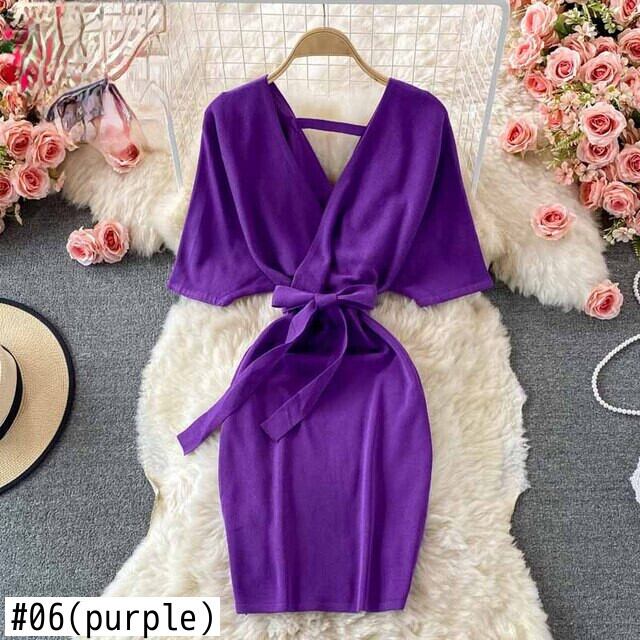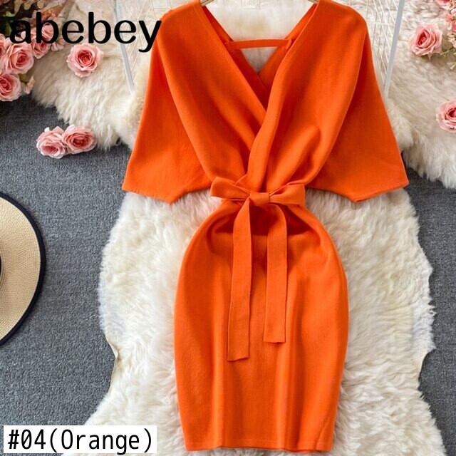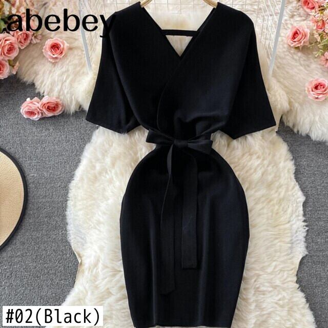 サマードレス 2022 ニットボディコンドレス女性ソリッド V ネック編み上げパーティードレスドレス 夏物 Vネック ソリッドカラー Abe39722657188