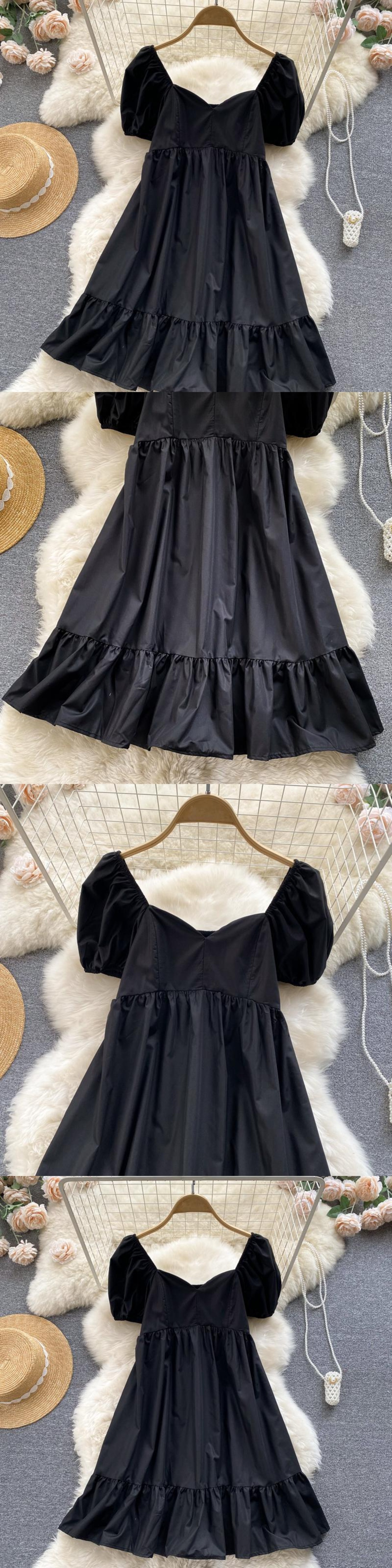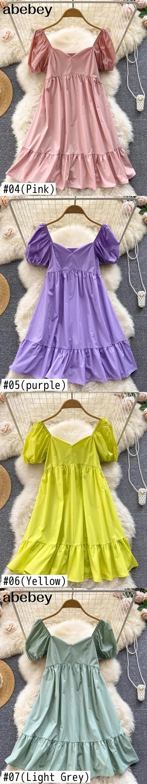 固体春ミニドレスパフスリーブ V ネックスリムパーティードレス A ラインの女性のドレス 2022 サンドレス スプリング 春物 Vネック Aライン ソリッドカラー Abe17023601037