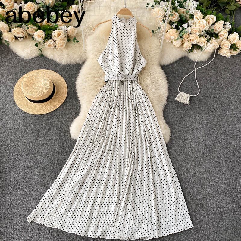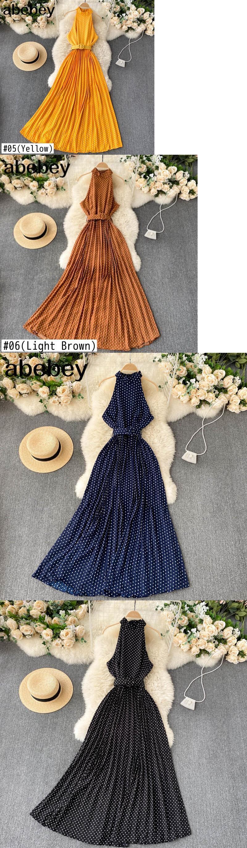 女性ドットホルターストラップドレス V ネックノースリーブ A ラインパーティードレス夏セクシーなオフショルダーフリルビーチロングドレス ラッフル サマー 夏物 Vネック Aライン Abe85162180083