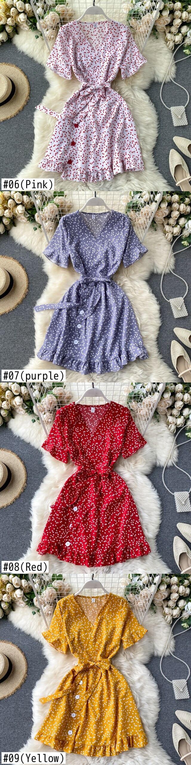 女性ボヘミアン ドット ドレス ローブ フレア スリーブ V ネック半袖ドレス ハート プリント シフォン ドレス ショート フレアスリーブ ハーフスリーブ Vネック Abe17247855573