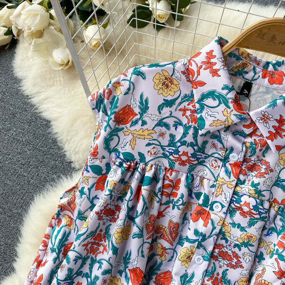 滑走路シャツドレス 2022 夏の女性半袖花柄プリントオフィスワークマキシロングドレス ショート ハーフスリーブ サマー 夏物 会社 学校 通勤や通学にも Abe87967702143