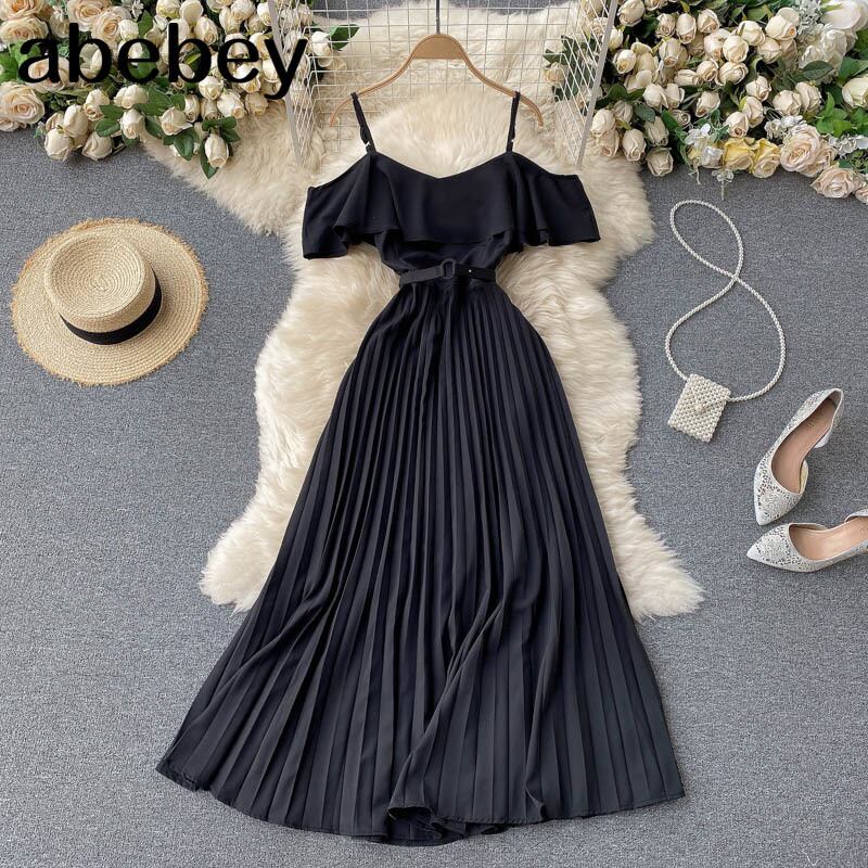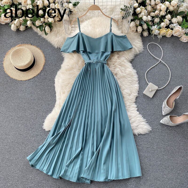 レトロデニムストラップドレス女性のセクシーなオフショルダーフリル A ラインドレス夏のストリートミディドレス ラッフル サマー 夏物 Aライン Abe11255270220
