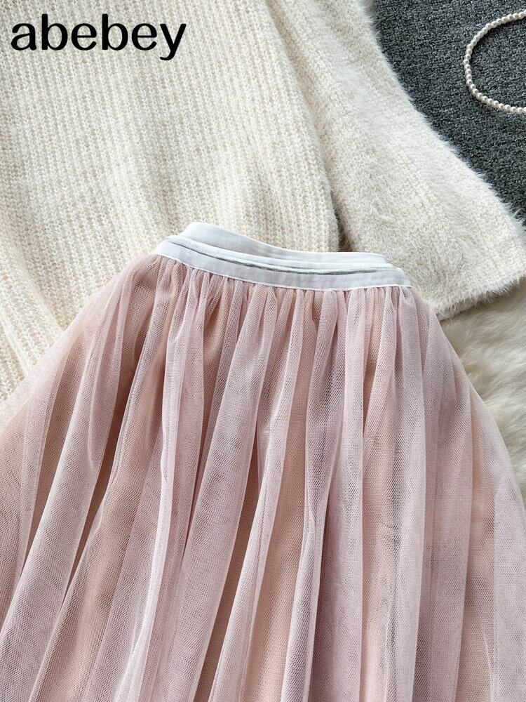 冬のツーピースセットボヘミアンバケーションビーチ 2 個セット女性長袖セーターとウエストプリーツメッシュロングスカートスーツ ウィンター 冬物 Abe90337782893