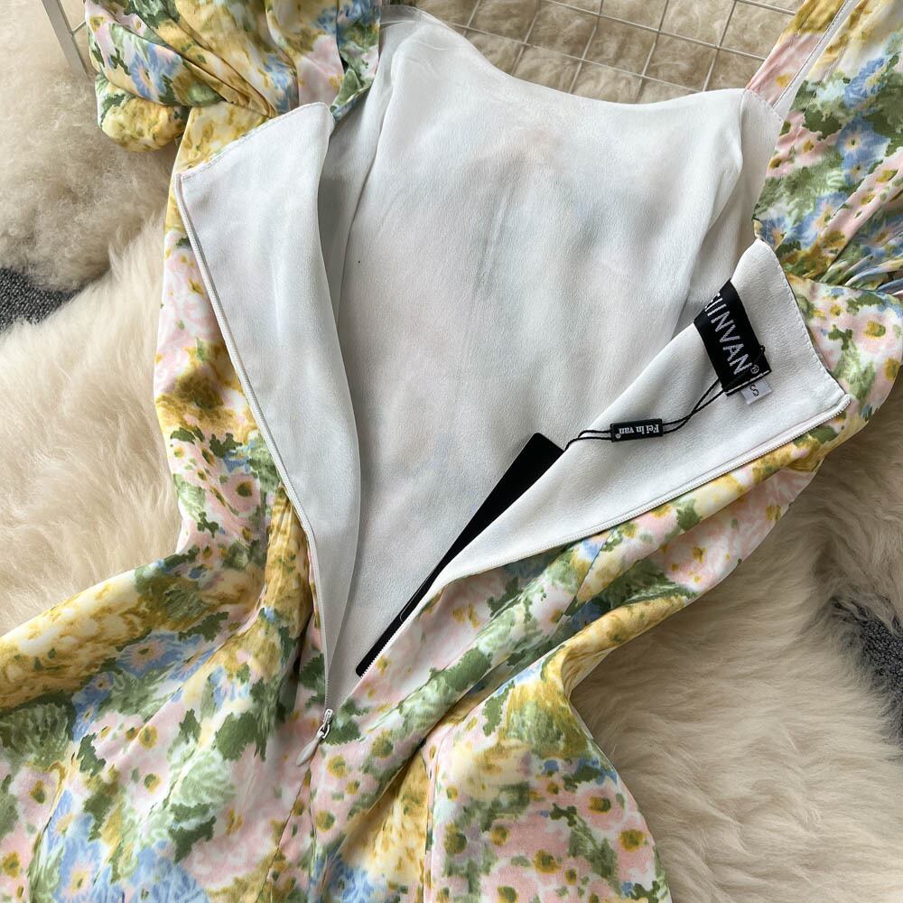 女性の夏のスクエアカラー半袖スウィートプリントスプリットラップヒップドレス Vestidos ショート ハーフスリーブ 大人ガーリー キュート カジュアル サマー 夏物 スクウェア Abe41521313594
