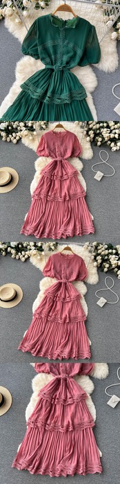夏のビーチロングドレス女性 o ネック半袖カスケードフリルビッグスイング Vestidos 赤/緑/ピンクマキシローブ ショート ハーフスリーブ ラッフル サマー 夏物 Oネック グリーン Abe12851883803