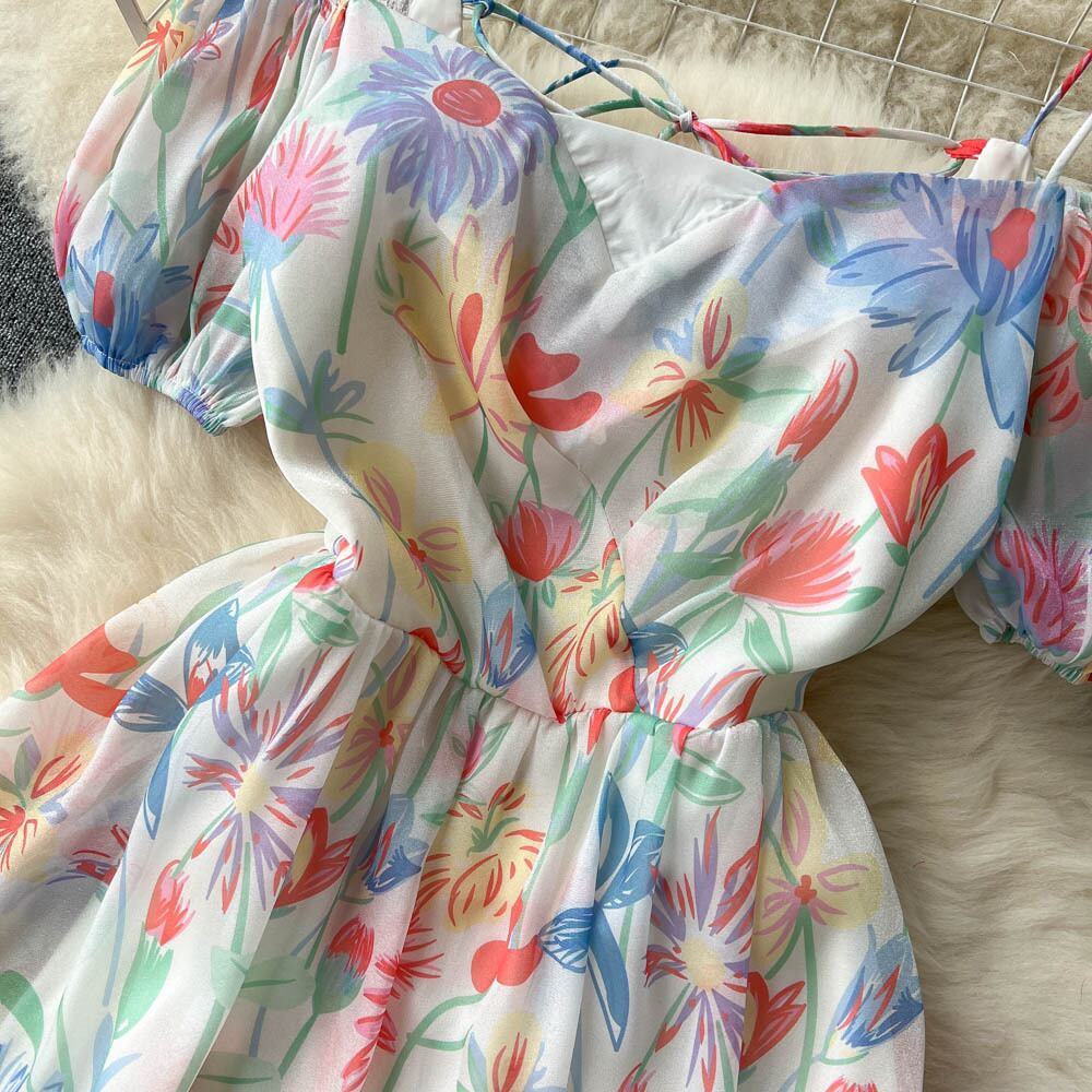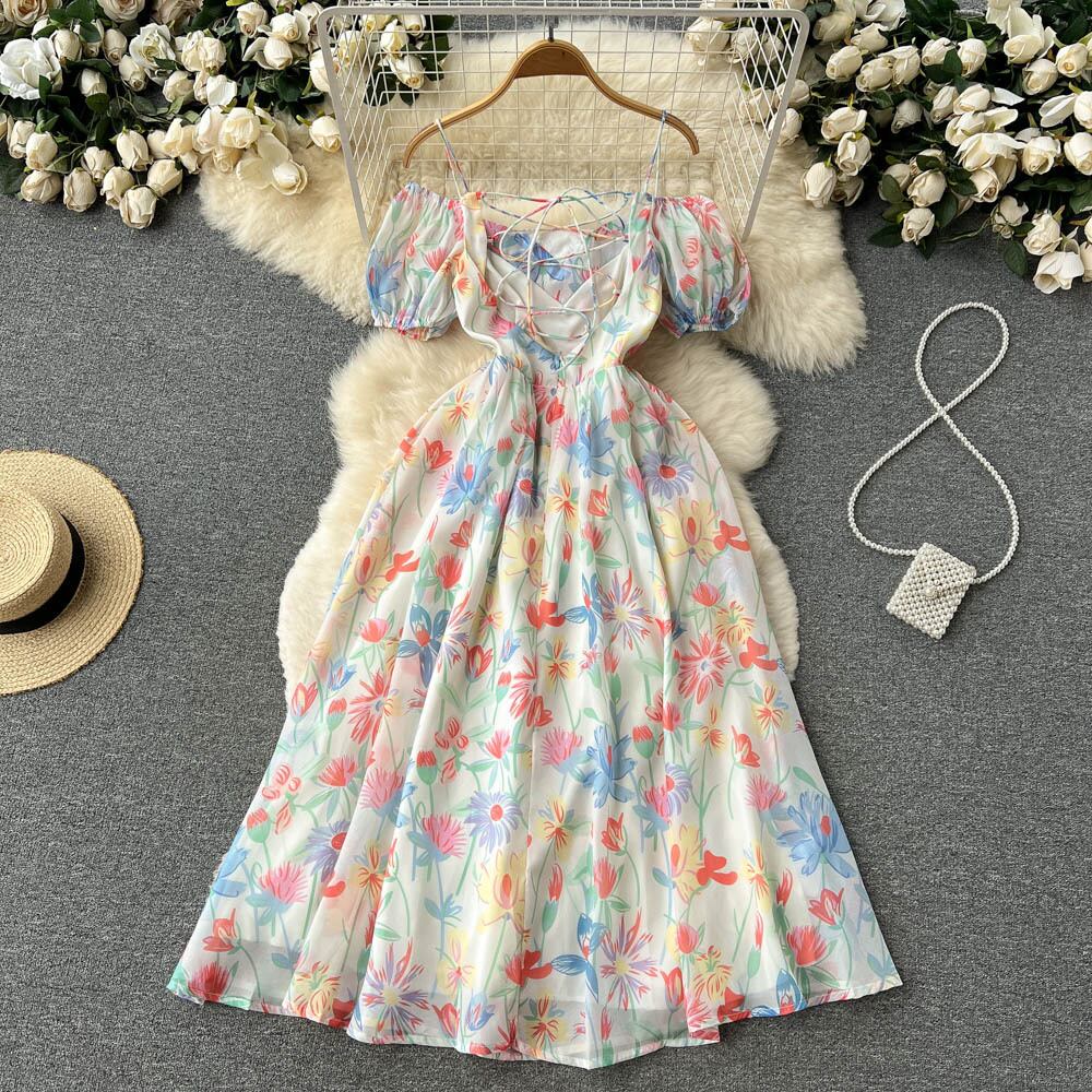 女性の夏の休日のセクシーなストラップマキシロングドレスビーチパーティーオフショルダースリムフリル Vestidos 花柄ドレス ラッフル サマー 夏物 Abe6148508495